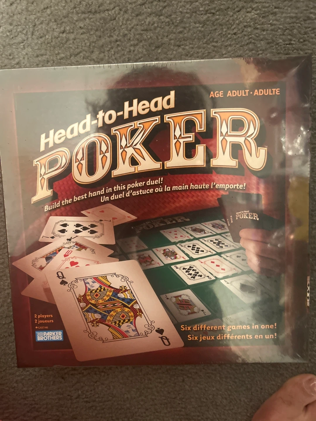 78Selling a Head-to-Head Poker game by Parker Brothers! It's for adults and includes six different games in one. Build the best hand in this poker duel!