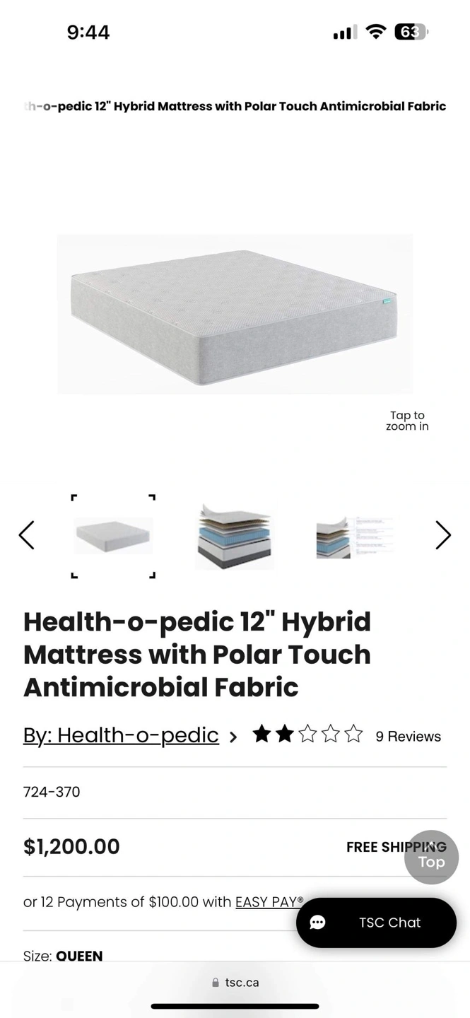 0Queen size mattress in box. 12 inches thick. Features Polar Touch Antimicrobial Fabric. Never been used, still in box. Couldnt return because its past due date. Was going to use for spare basement bedroom but changed our mind too late. Can deliver if need be! Thanks