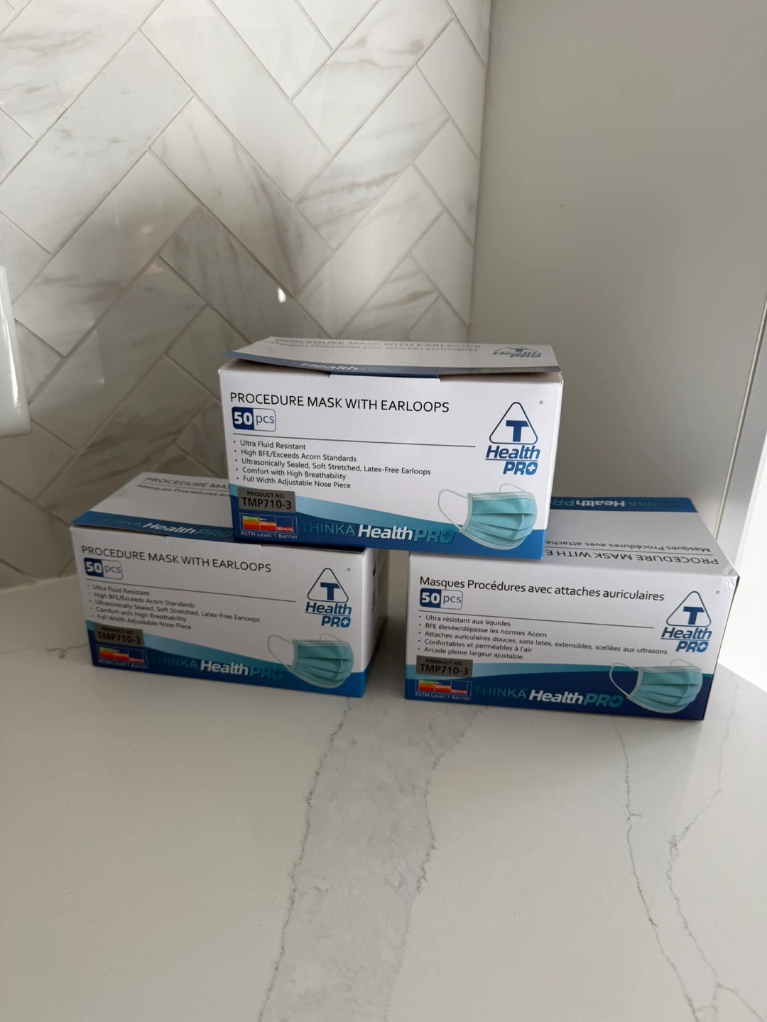 74Selling boxes of Health Pro procedure masks. Each box contains 50 masks. These masks are new in box and feature earloops. They are ultra fluid resistant and comfortable with high breathability All 3 boxes for $8.00 Not for individual sale