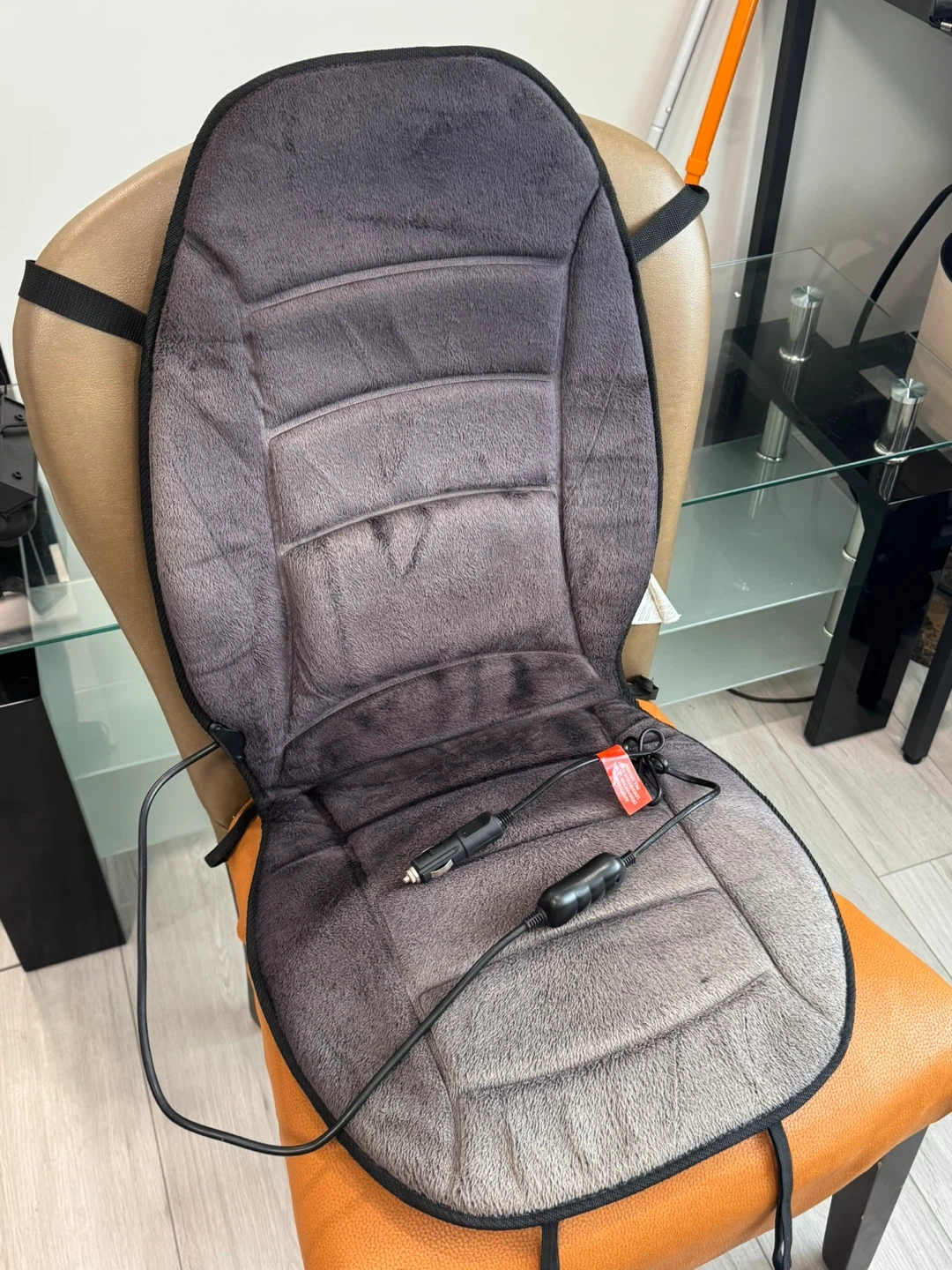 Keep cozy on your drives with this HealthMate heated car seat cushion! It's in great shape and ready to add some warmth to your vehicle. Soft velour cover and universal fit Easy controller with high and low heating setting Safety protection with pressure pad, auto shut off when not in use 2 back-traps and 4 cinch loop to keep the cushion firmly in place Front cover: super-soft velour, polyester Back cover: fabric 37 in. x 17.7 in. x 0.5 in.