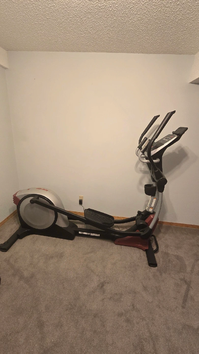 5Selling a HealthRider H45e elliptical machine! It's in good shape and ready for someone looking to get a good workout at home. Perfect for cardio and low impact exercise. It has a display to track your progress too, it can also be folded for space saving. But it need bit of fixing for the pedal chain.