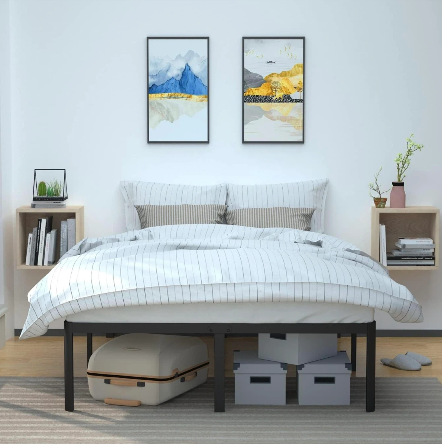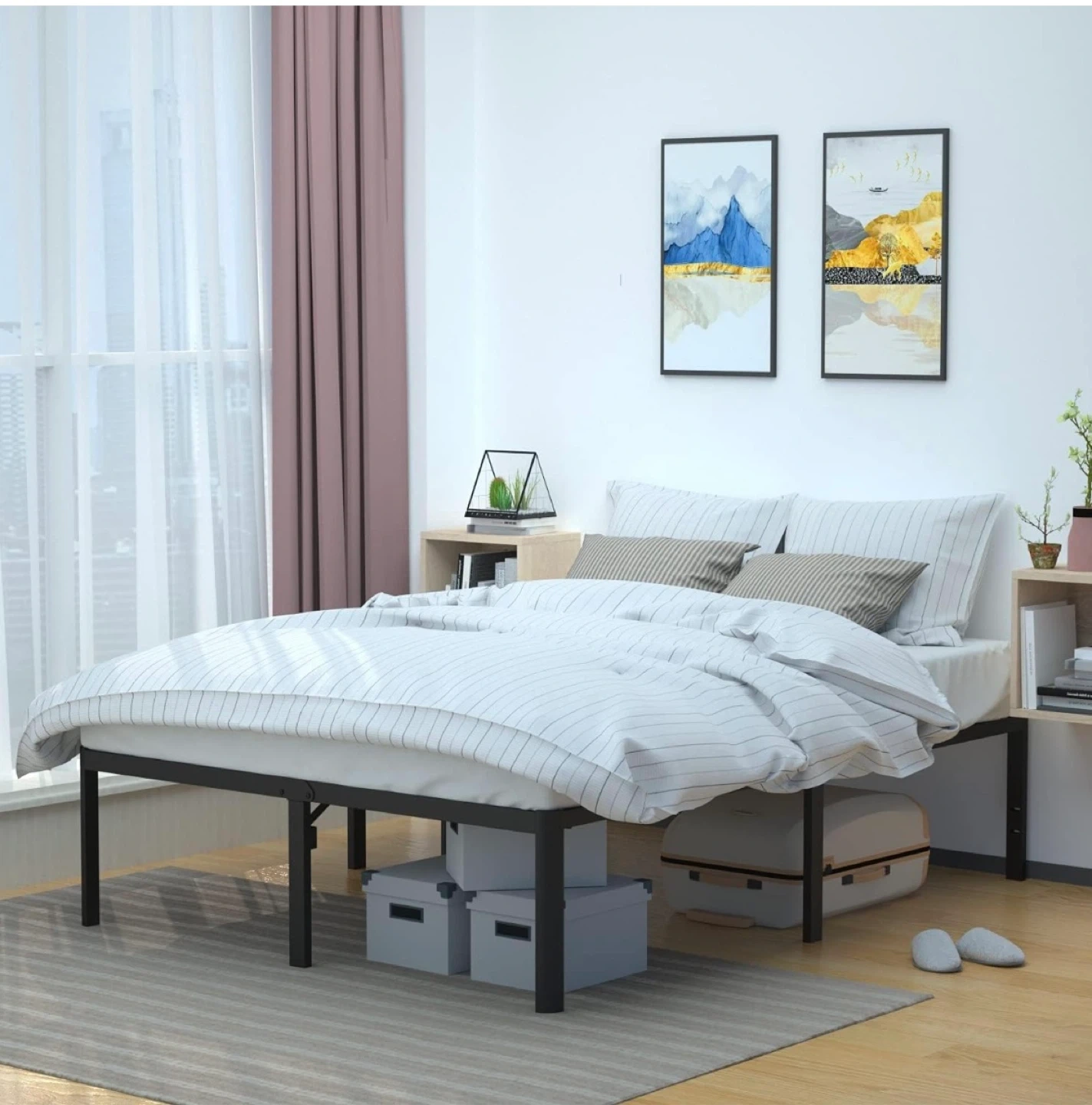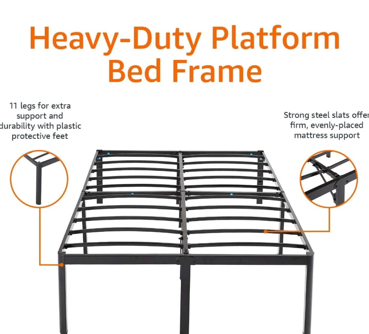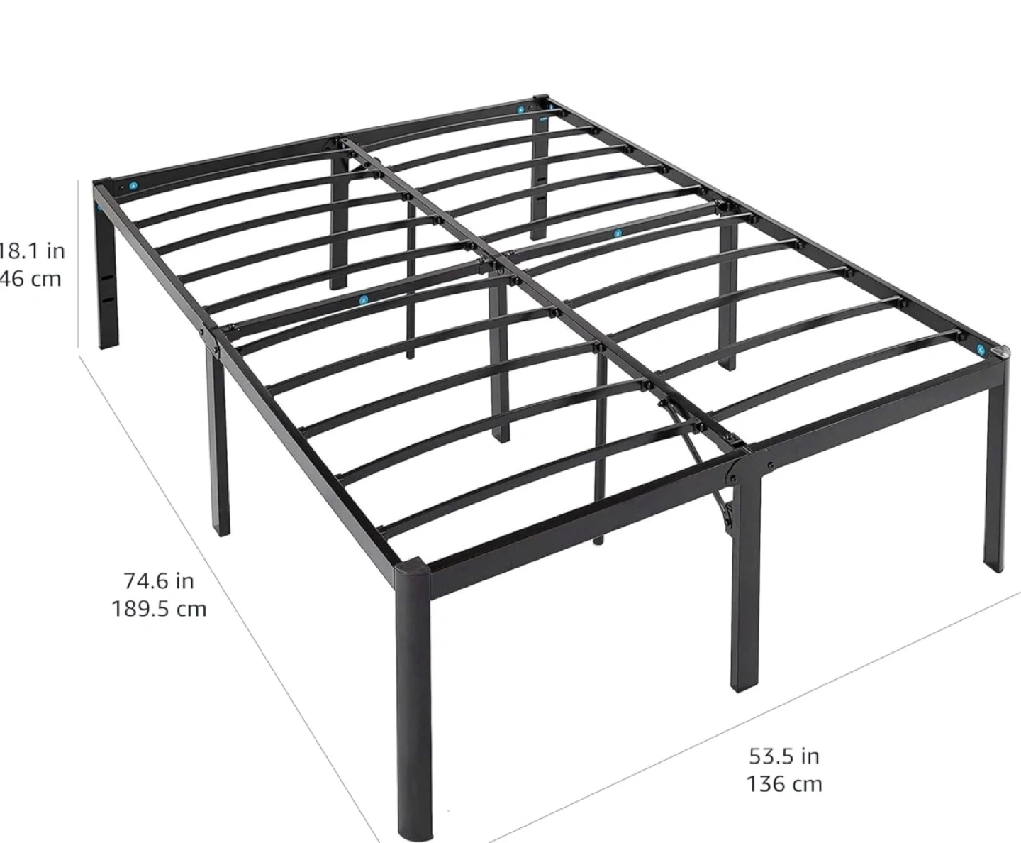 15Selling a heavy-duty platform bed frame! It has 11 legs for extra support and durability, with plastic protective feet. The strong steel slats offer firm, evenly-placed mattress support. Dimensions are 18.1 in (46 cm) height, 74.6 in (189.5 cm) length, and 53.5 in (136 cm) width.