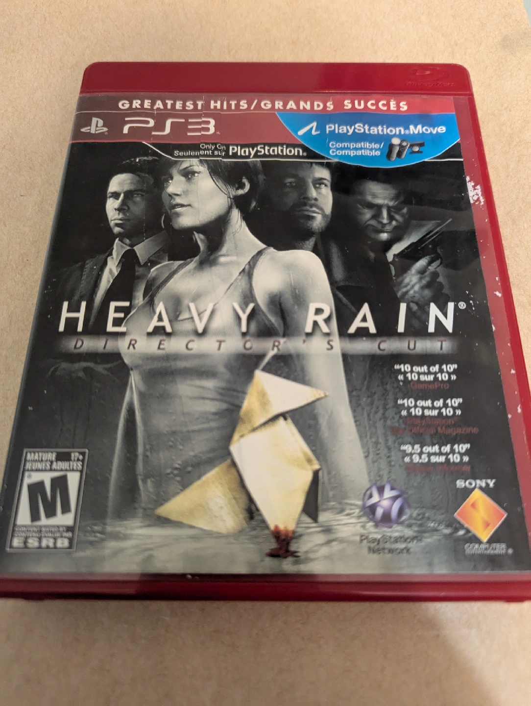 110Selling a copy of Heavy Rain Director's Cut for the PlayStation 3! This game is rated M for Mature and features blood and gore, intense violence, sexual content, and strong language. A captivating and fascinating adventure from the beginning to the end! can meet in Poco or Port moody