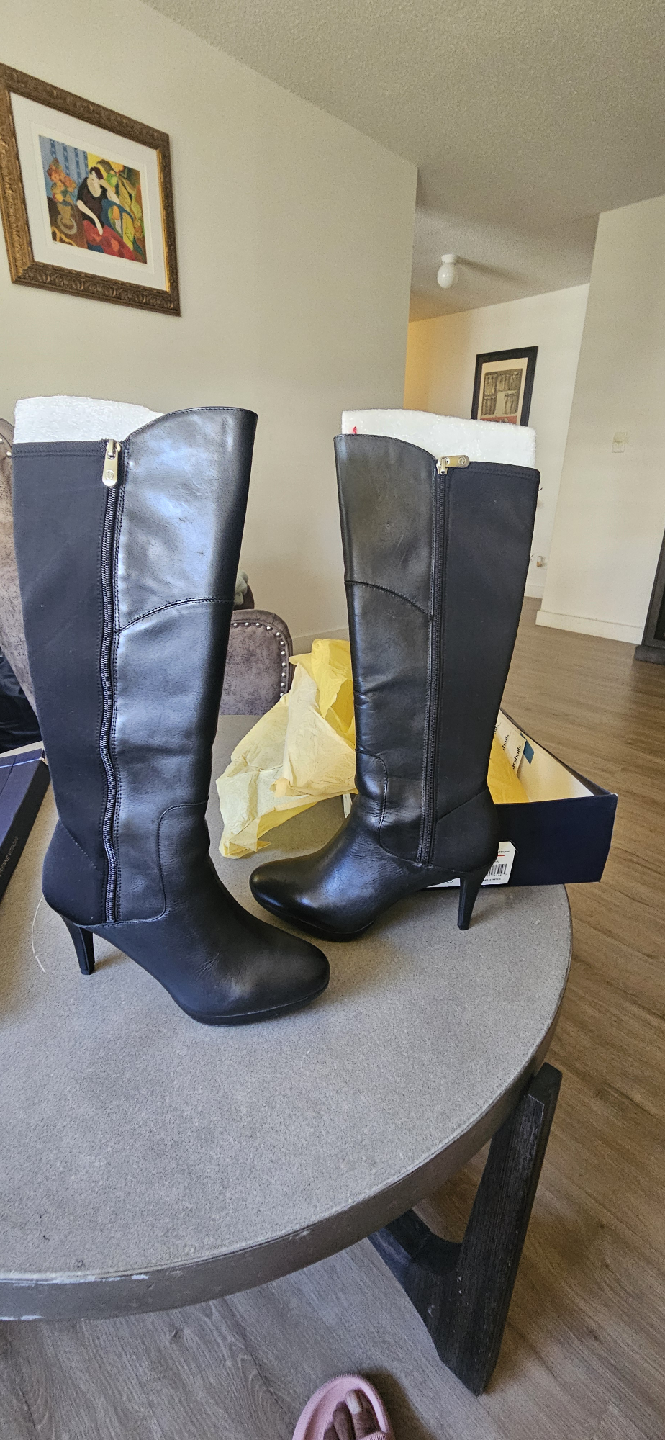 Selling a pair of Adrienne Vittadini Pisa boots in black, size 10M! They come in the original box and are in great condition. These stylish boots are perfect for any occasion and feature a comfortable fit with a touch of stretch