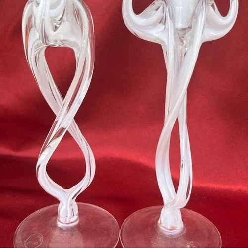 Italian Cello Jellyfish Art Hand Blown Glass Candlesticks