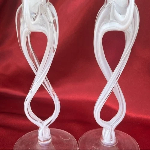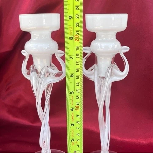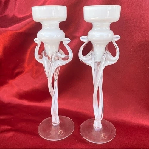 Italian Cello Jellyfish Art Hand Blown Glass Candlesticks