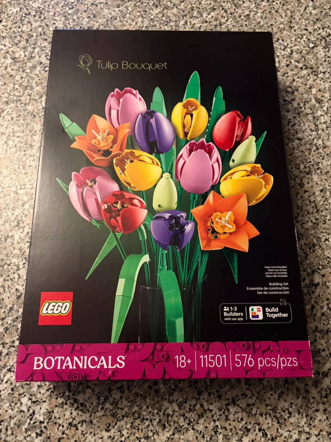 This is the LEGO Botanical Collection Tulip Bouquet building set. It has 576 pieces and is suitable for ages 18+. Build your own beautiful bouquet of tulips!