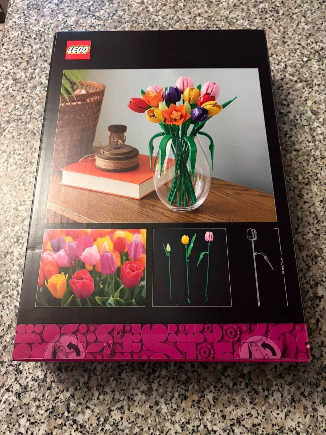 This is the LEGO Botanical Collection Tulip Bouquet building set. It has 576 pieces and is suitable for ages 18+. Build your own beautiful bouquet of tulips!