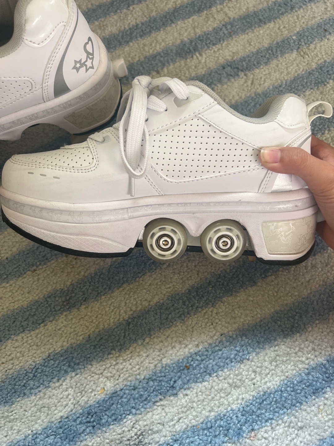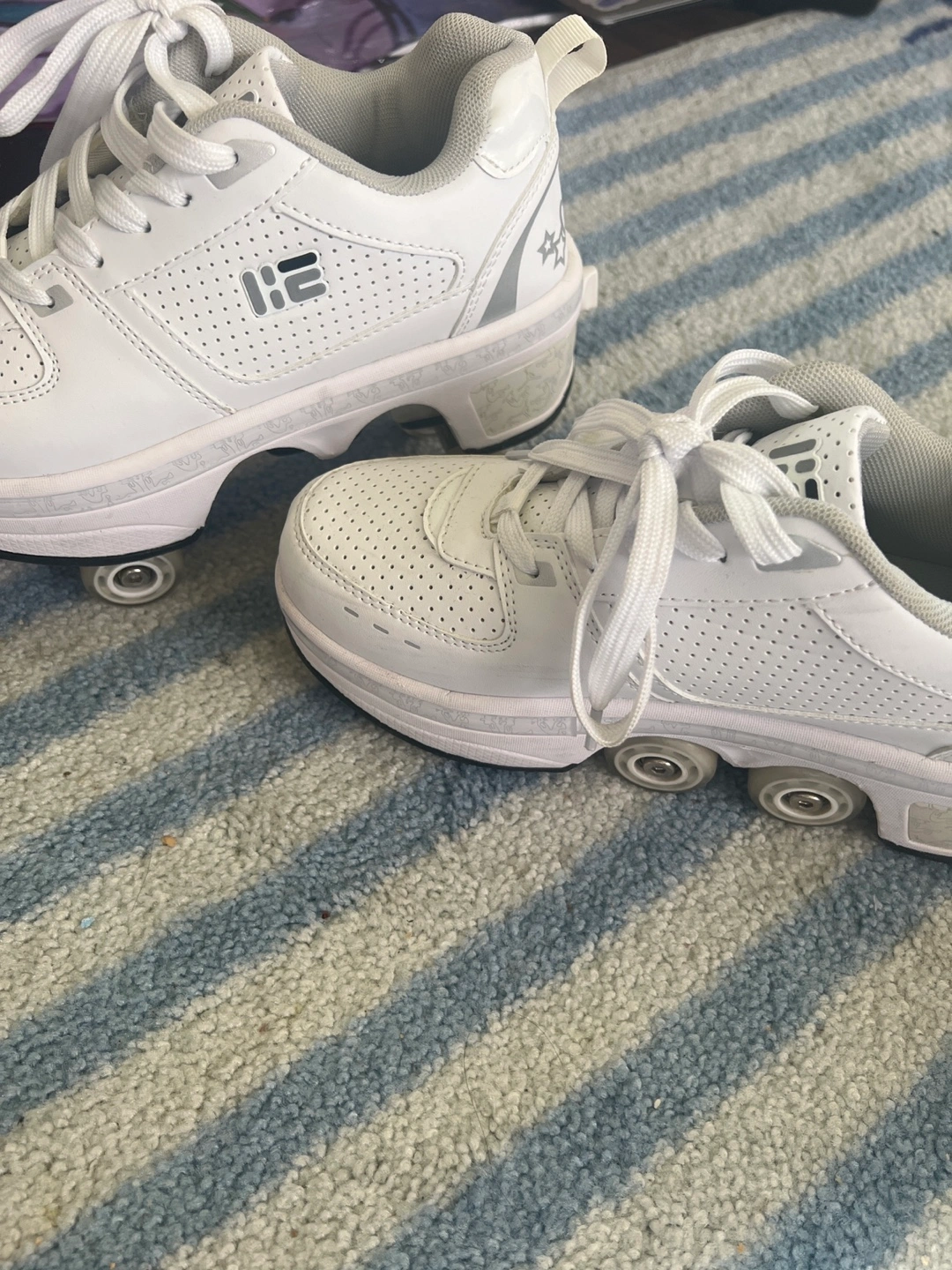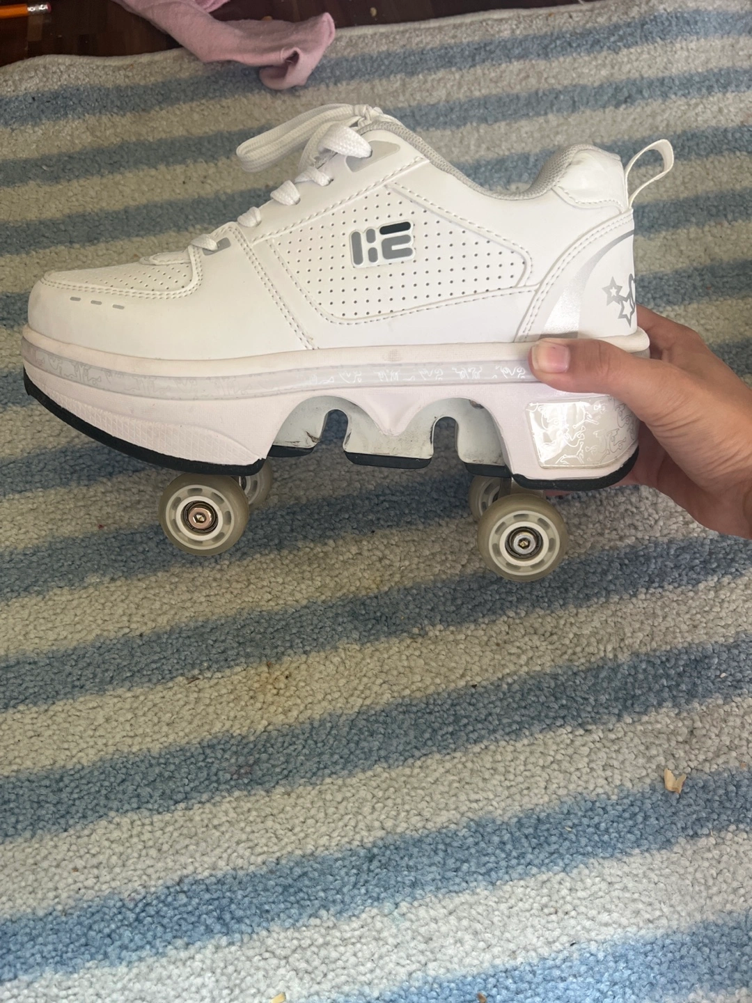 Roller skating shoes that come convenient when tired of walking they allow you to turn them into skates with a click of a button (that have barely been used)