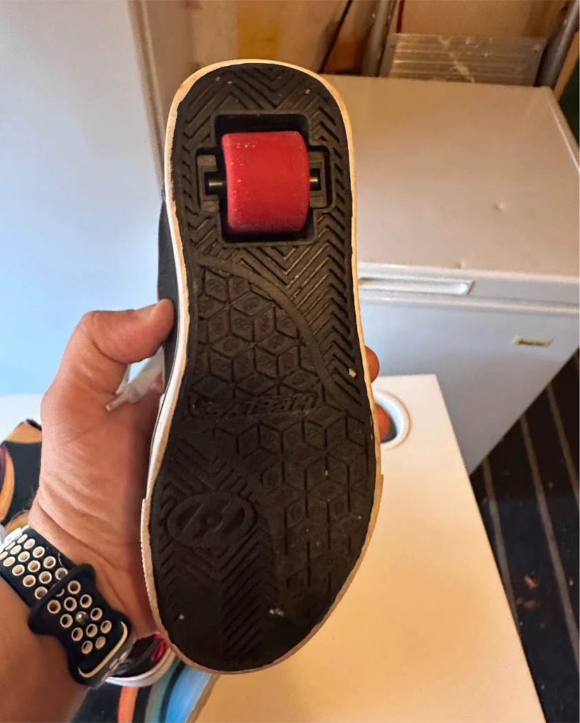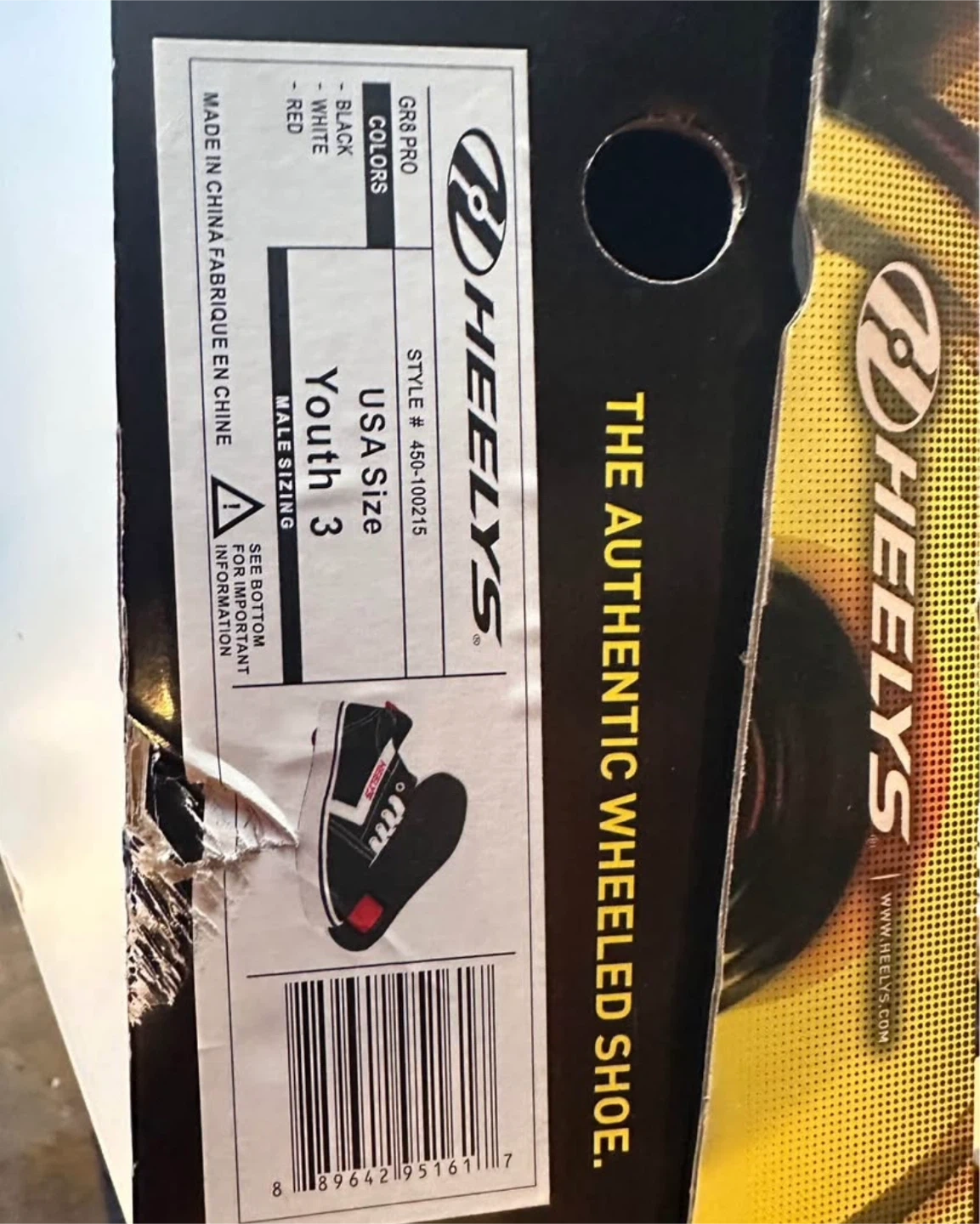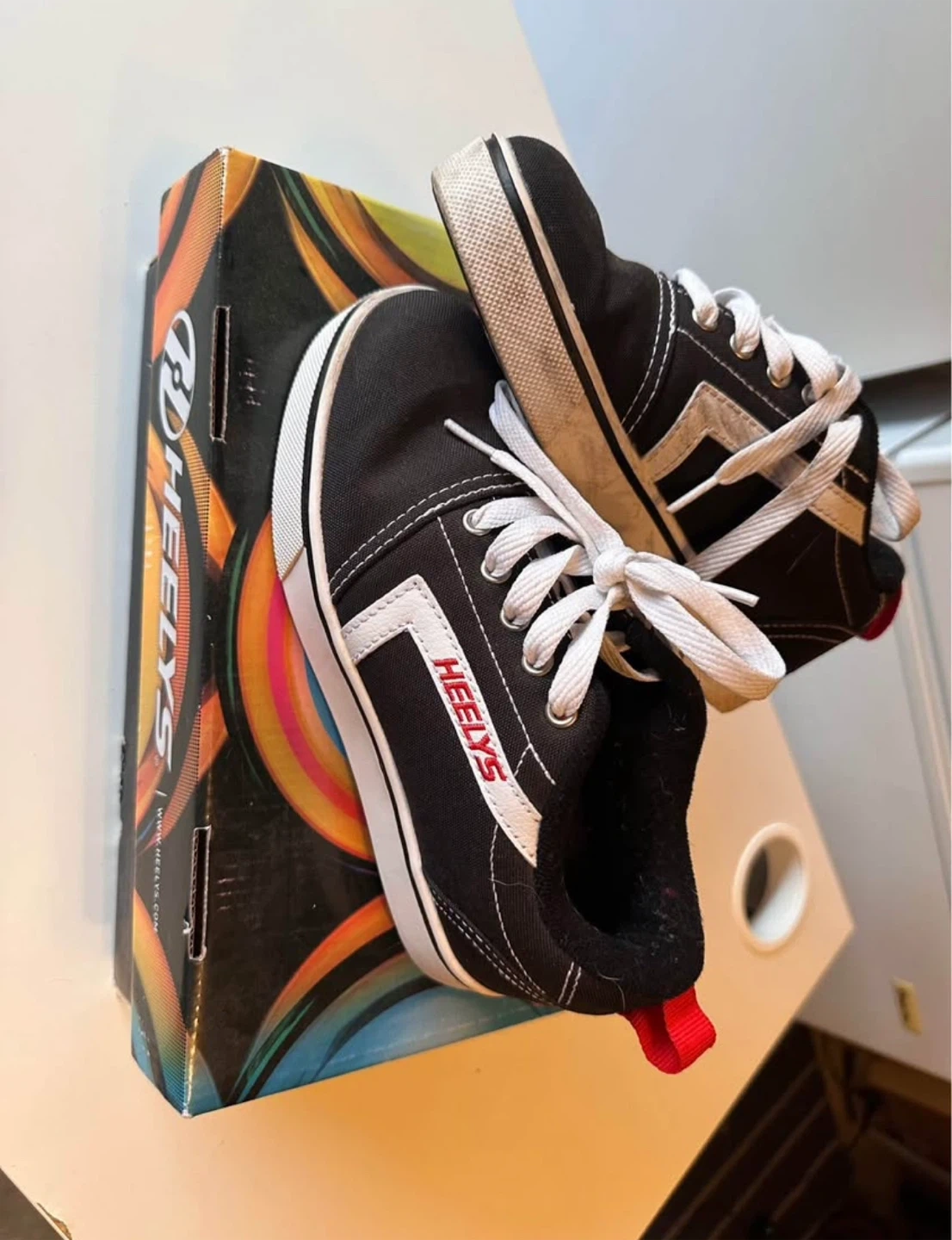 Selling a pair of Heelys wheeled shoes in youth size 3! They come with the original box. The shoes are black with white accents and red wheels. Great for some fun outdoor activities!