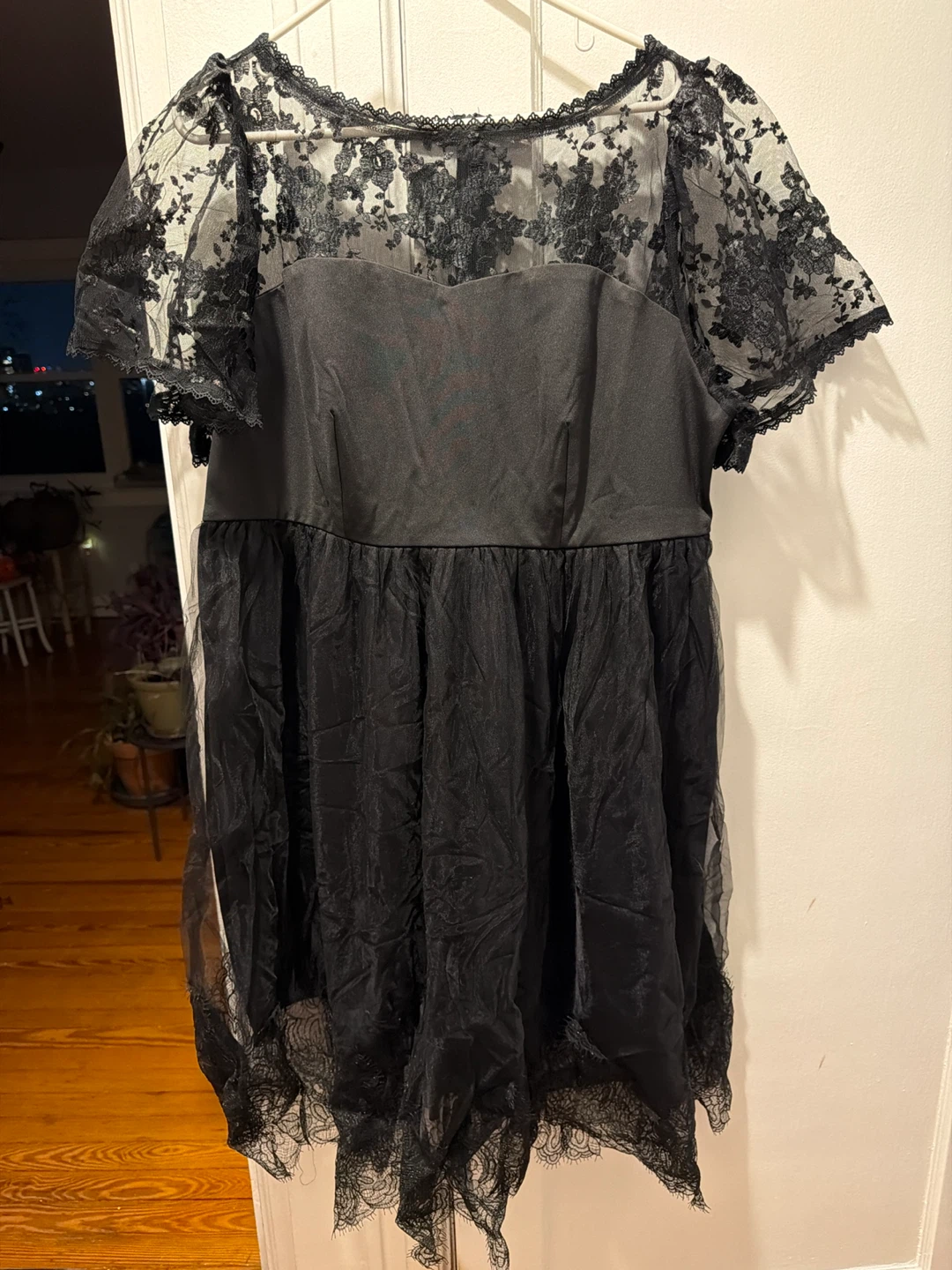 1 / 11 / 1Buy & SellBlack Lace DressBlack Lace Dress$14Selling a black dress with delicate lace detailing. It features a fitted bodice and a flowy skirt. Perfect for a night out or a special occasion!ConditionNewSize2XLWHERE TO MEETJennView MapSELLERverifiedJennMaspeth782 reviews0 chats·0 favorites·10 viewsSEND CHAT TO SELLERHi Jenn! I’m interested in your listing.Hi Jenn! I’m interested in your listing.Get the Karrot app to chatSign In to chat