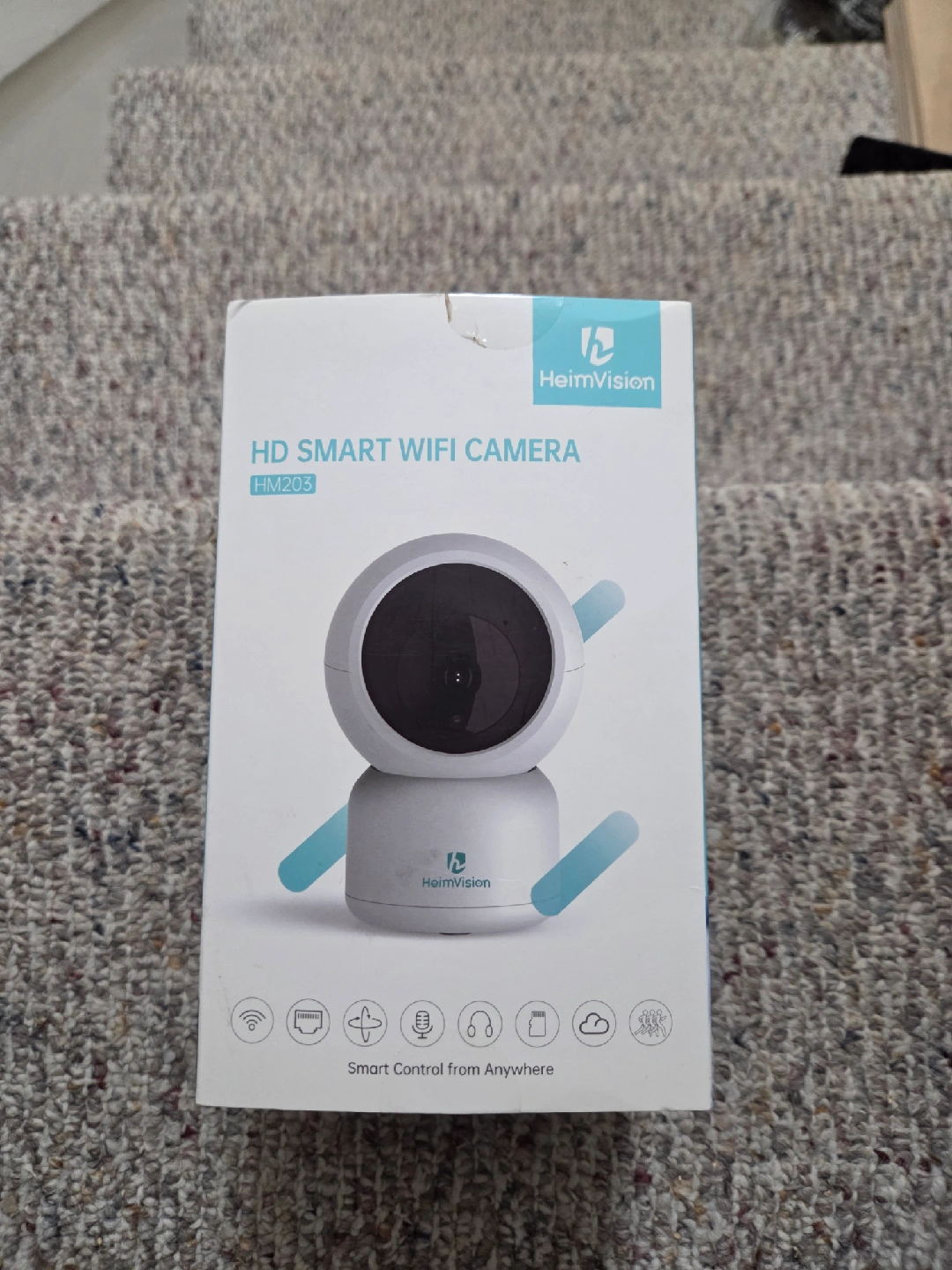 83Selling a brand new HeimVision HM203 HD Smart WiFi Camera, still in its original packaging! It comes with all the original components including a USB cable, screw set, camera mount, power adapter, and user manual. Key features include: - Multiple connection options - Handy two-way audio - Intelligent tracking available - Smart motion and sound detection - Alternative local and cloud storage - Remote viewing via app or browser