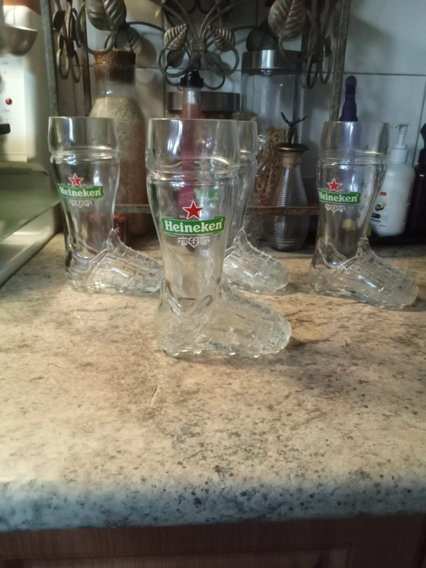 95Selling a set of four unique Heineken beer glasses shaped like boots! These are perfect for adding a fun touch to your next gathering or for the Heineken collector in your life