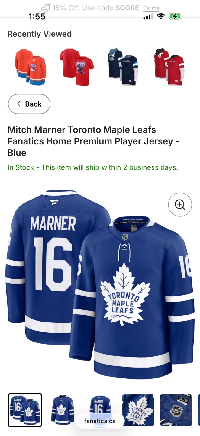 This is a blue Fanatics Toronto Maple Leafs home jersey for Mitch Marner. It's officially licensed gear. It has player name and number on the back. SIzE 4XL.