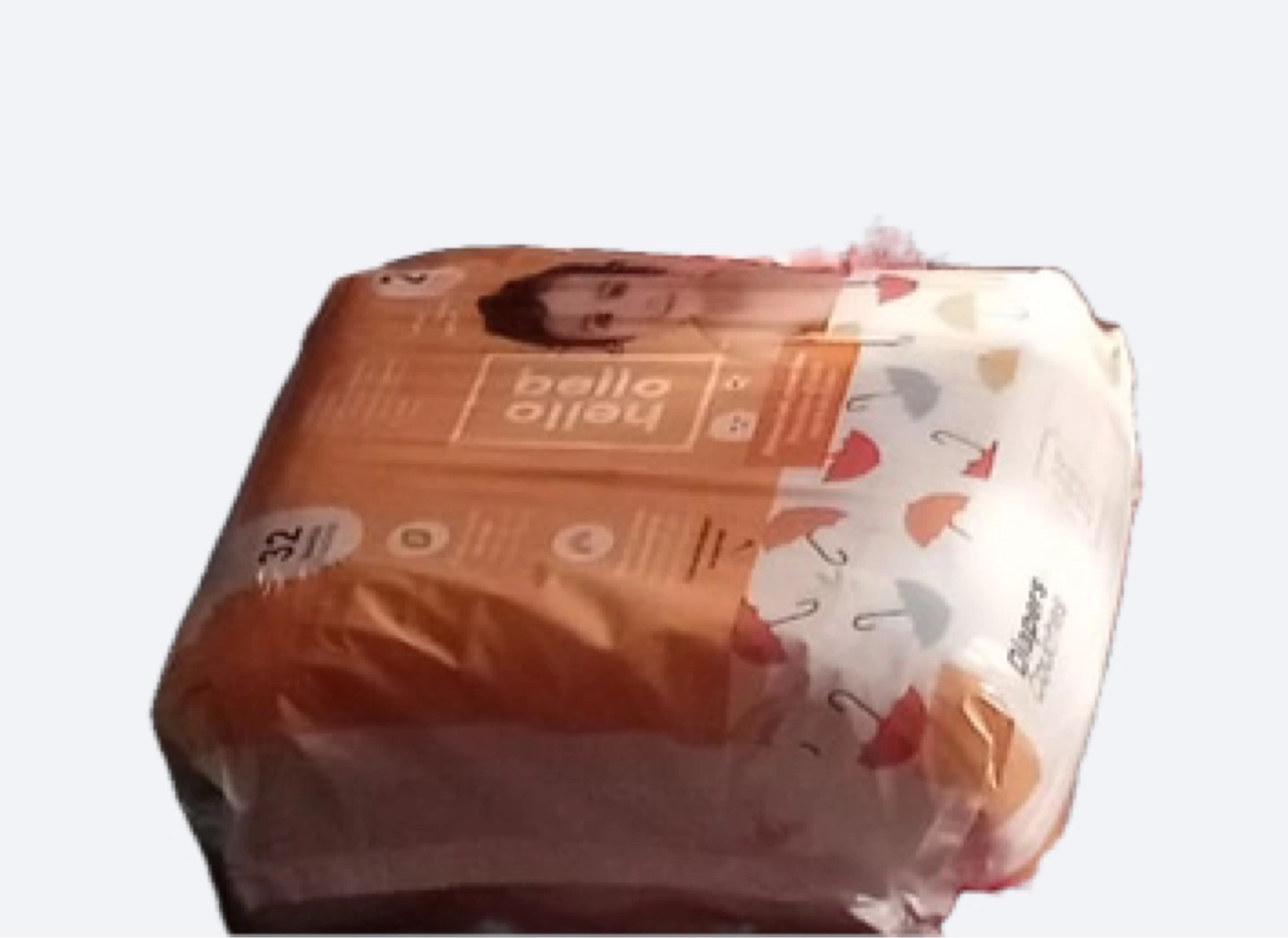 A package of diapers. Features a lovely umbrella print. These would be fantastic for anyone looking to keep their little one dry and happy. Size 2