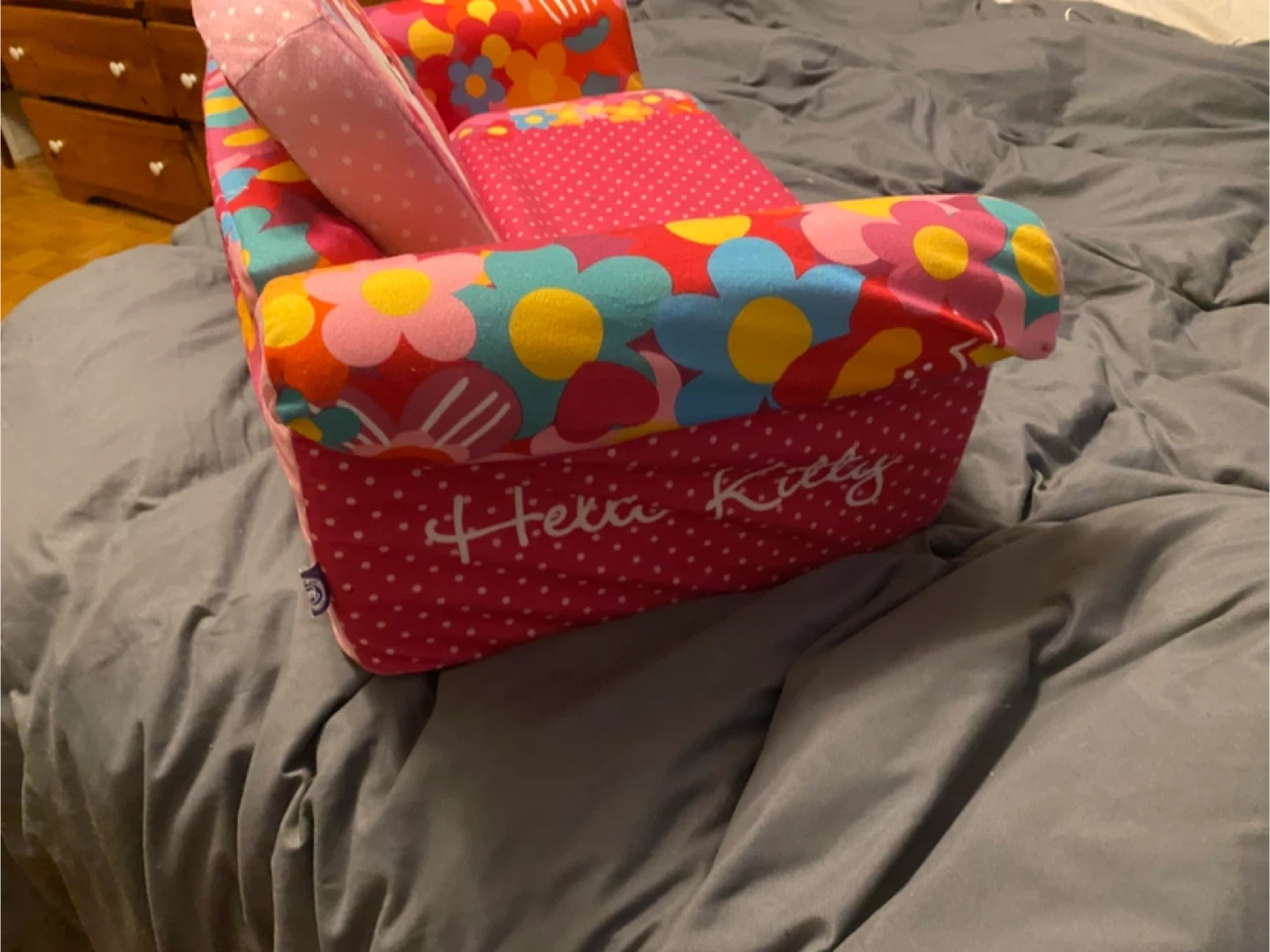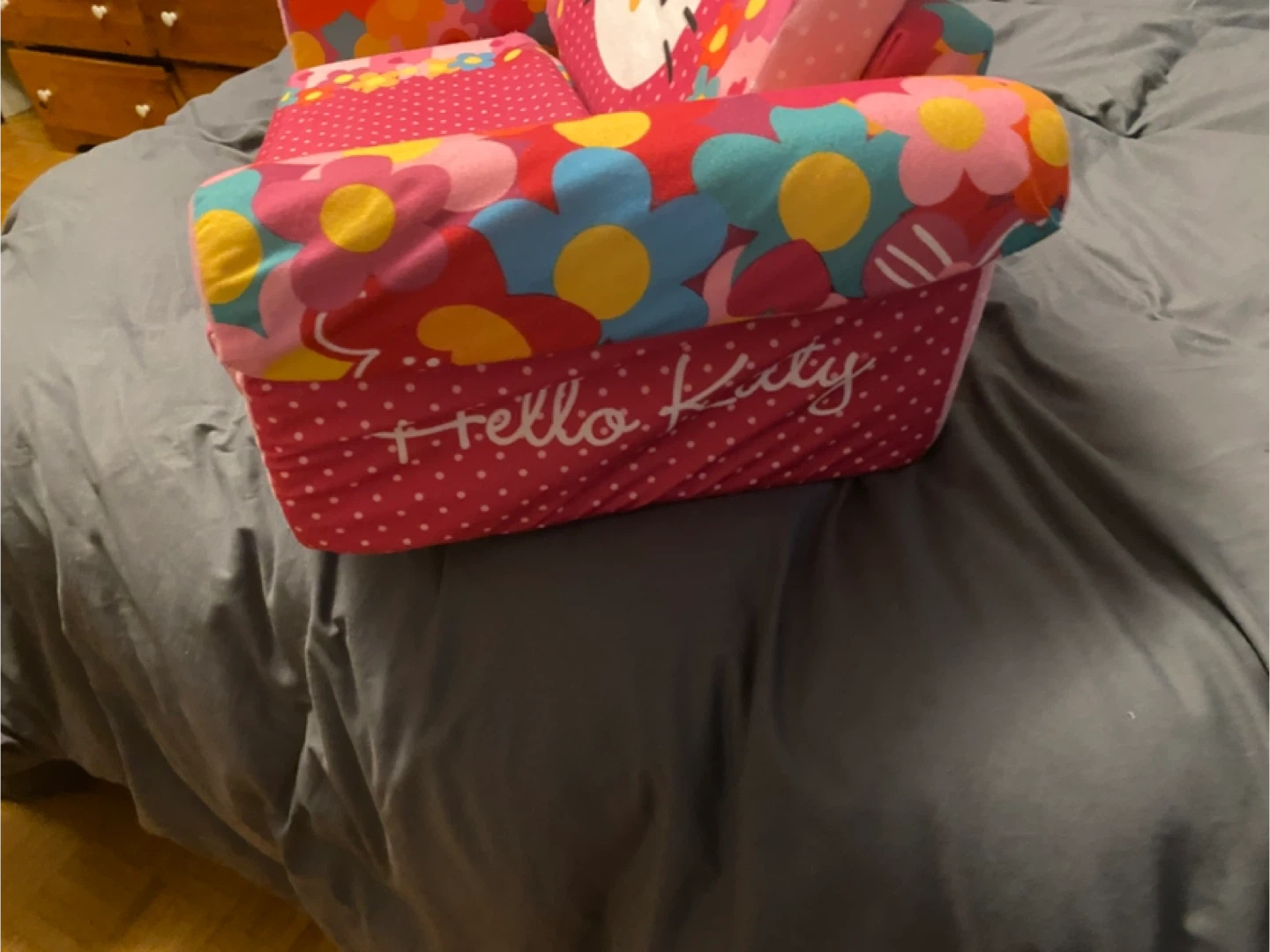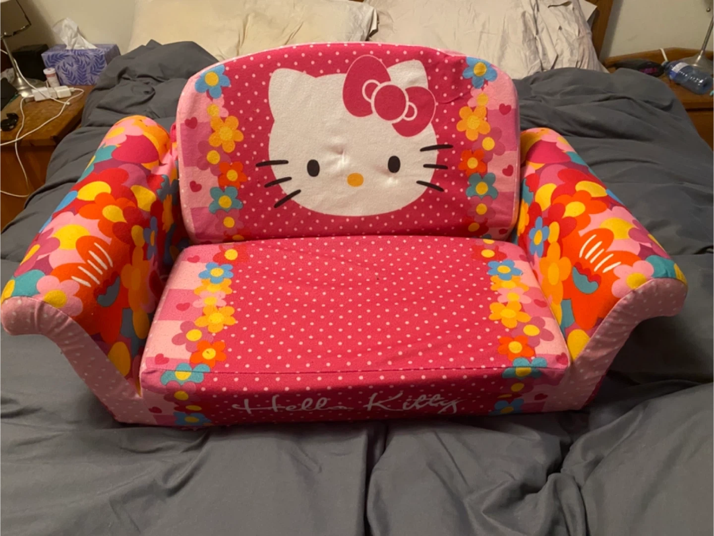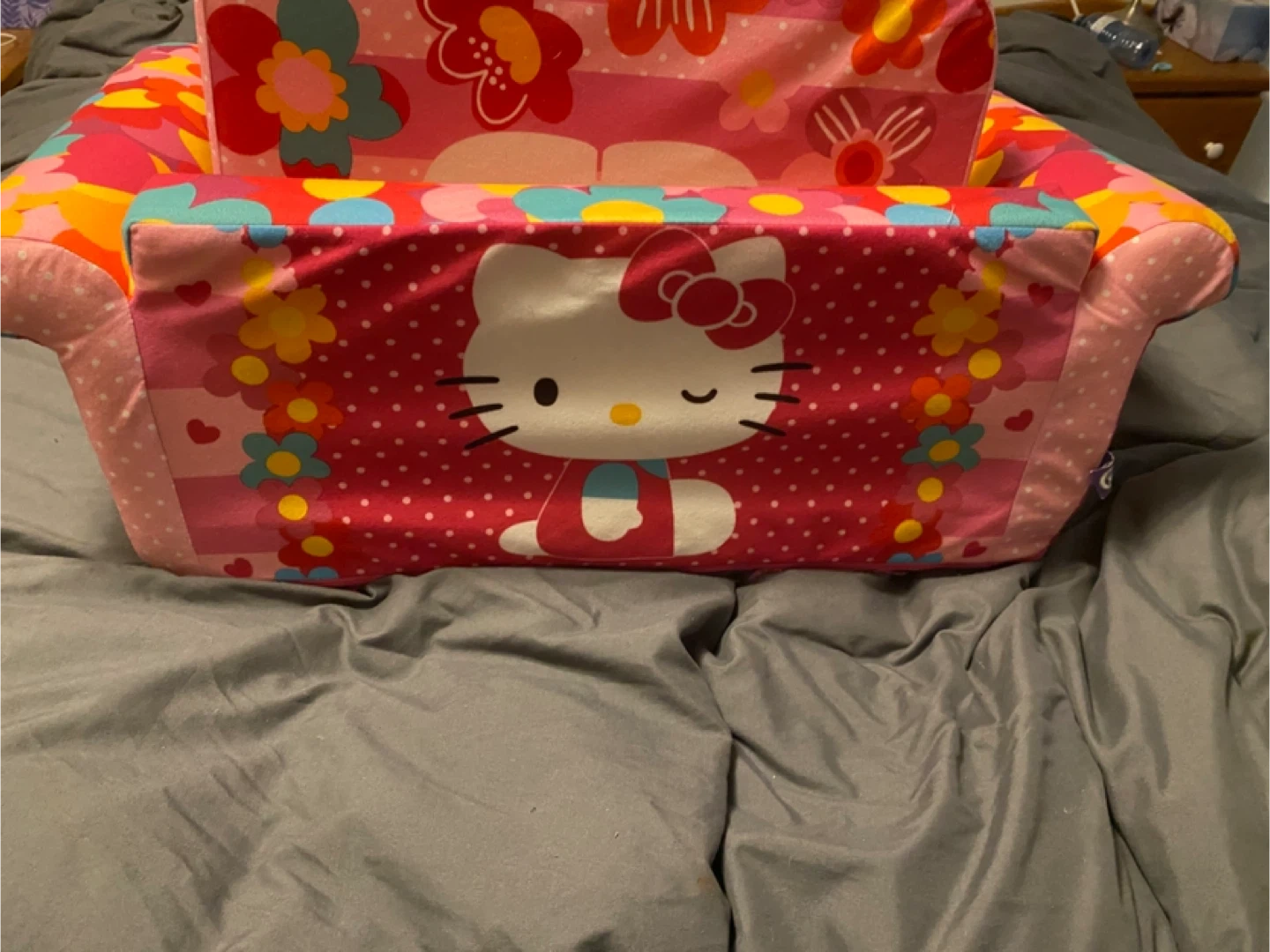 10Toddler sized foam couch, with pull out bed. Removable cover. Bug & pet free home. Has been washed. Cash Only.