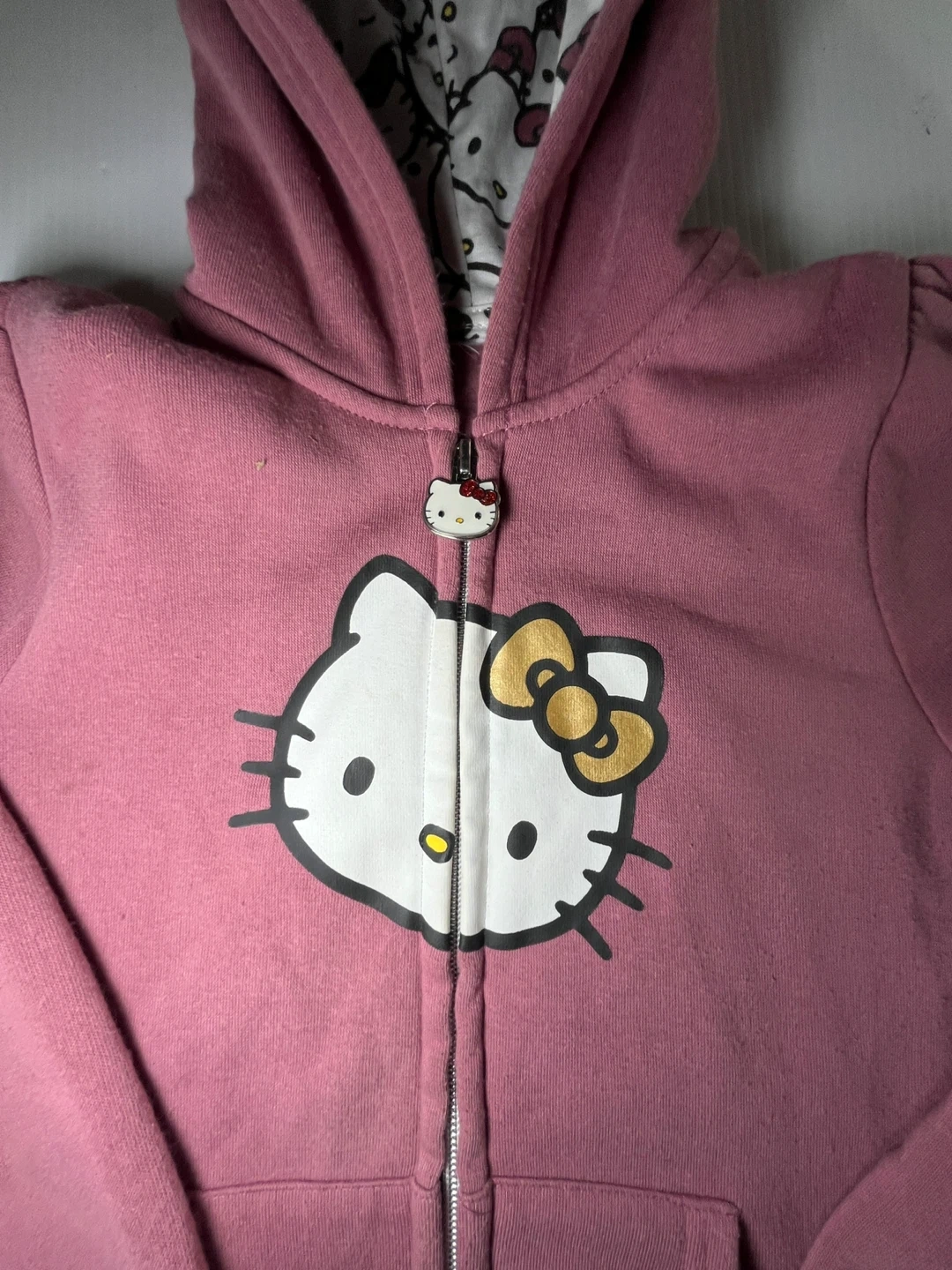70Here's a cute Hello Kitty zip-up hoodie! It's in a lovely pink colour and features a large Hello Kitty graphic on the front. The inside of the hood has a fun Hello Kitty pattern too. Perfect for any Hello Kitty fan!