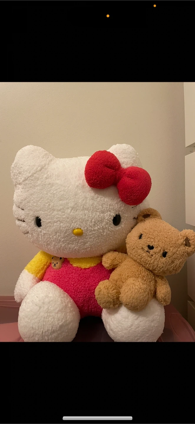 Selling a cute Hello Kitty plushie! It comes with an adorable little teddy bear friend. Perfect for any Hello Kitty fan or anyone who loves cuddly toys! It's in great condition and ready for a new home