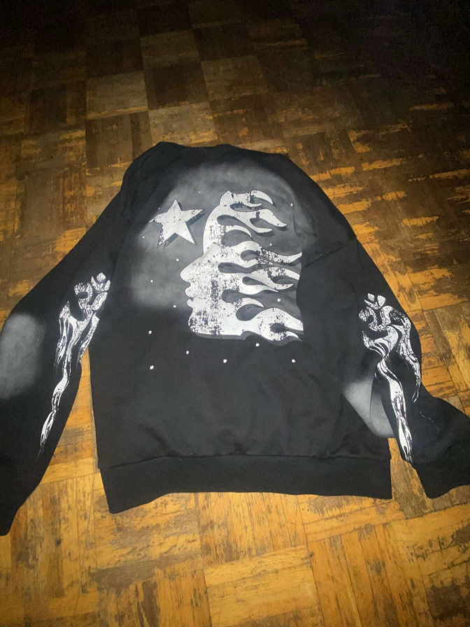 100Selling a Hellstar hoodie in black. The hoodie features a unique design on the front, back, and sleeves. Great for casual wear!