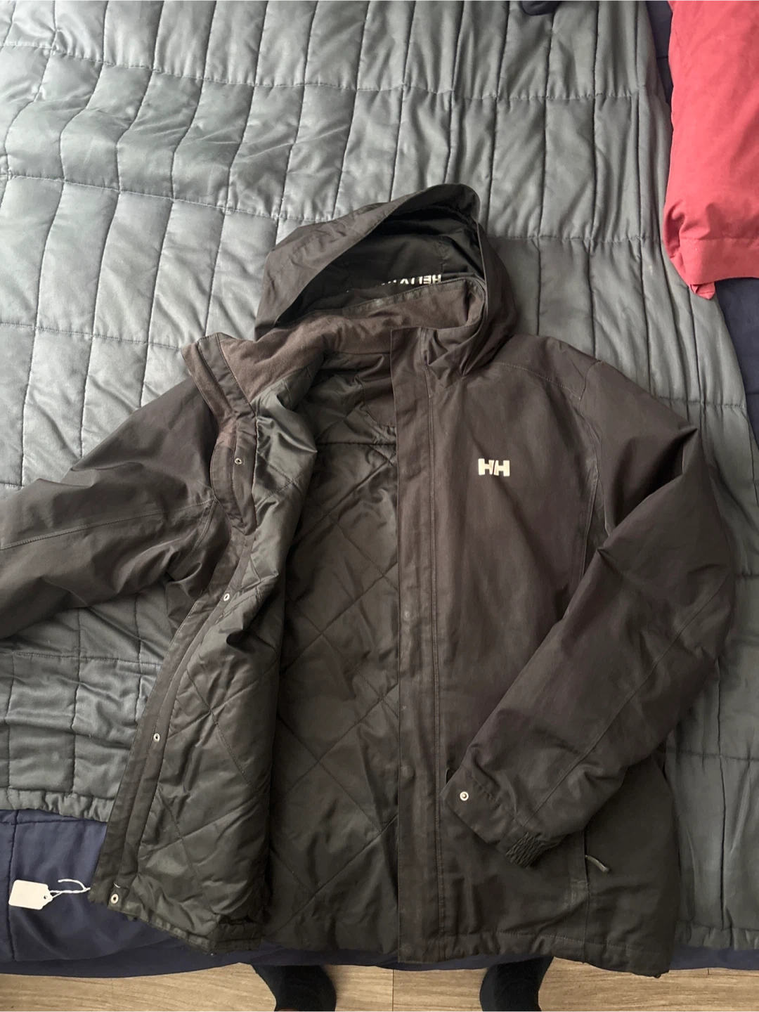 Selling a Helly Hansen winter black jacket. It's in great condition and ready for a new owner! Perfect for those cooler days snowy or rainy weather!