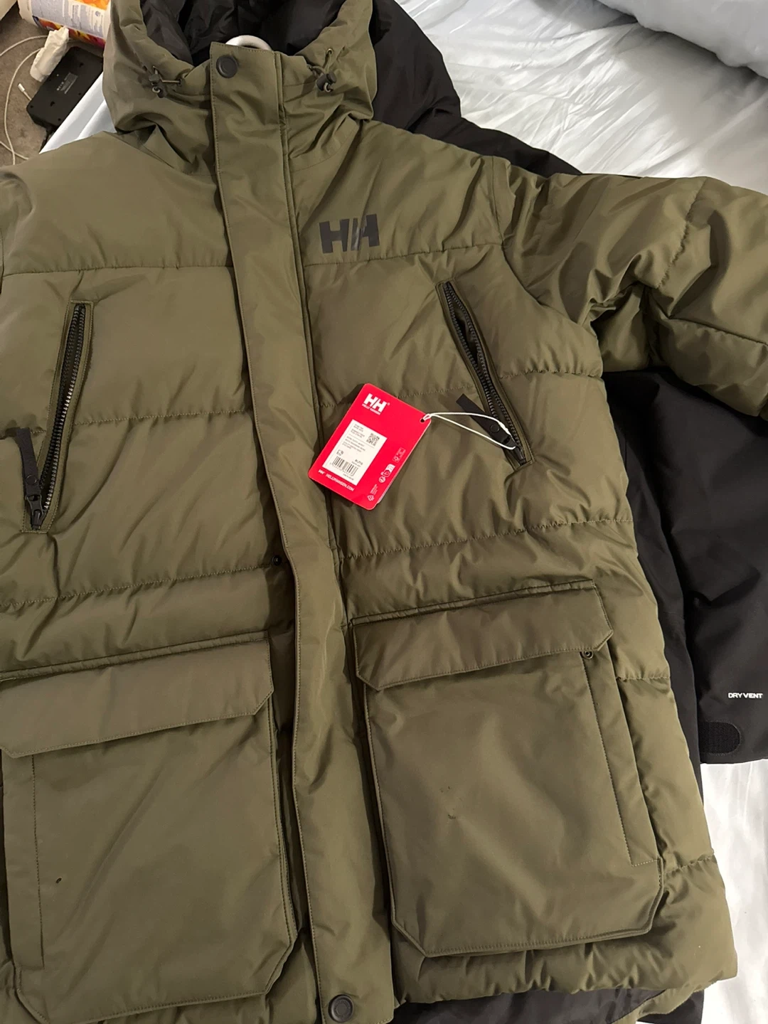 Selling a Helly Hansen Reine Puffy Jacket in Utility Green. It's size XL/TG. Originally bought for $450 CAD! It's in great condition and ready to keep you warm this winter