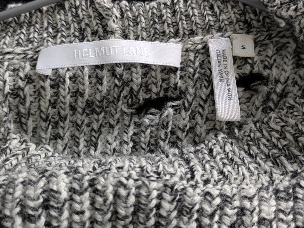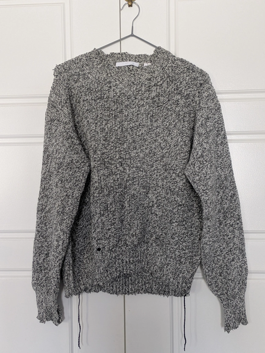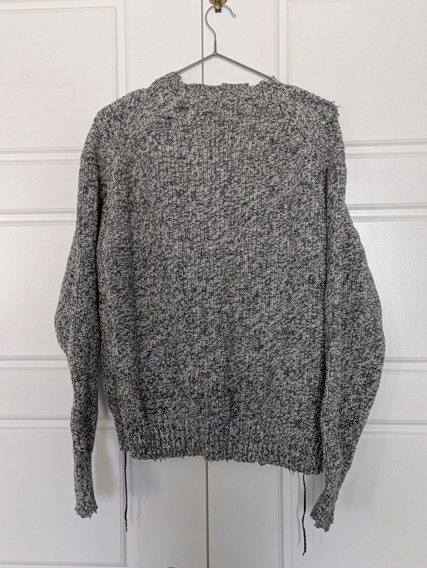20Grey and black distressed knit sweater. Size small. Made in China with Italian yarn.