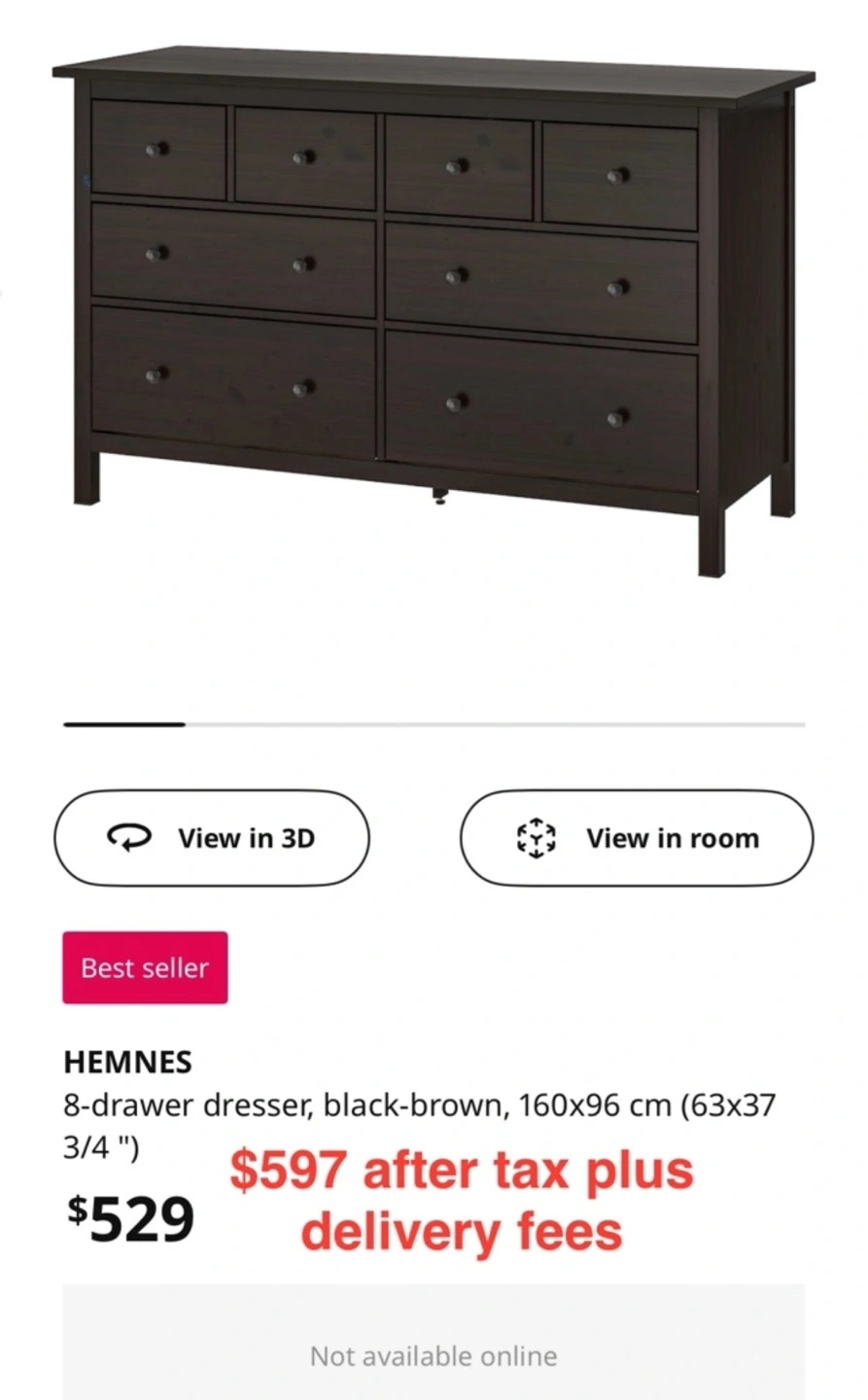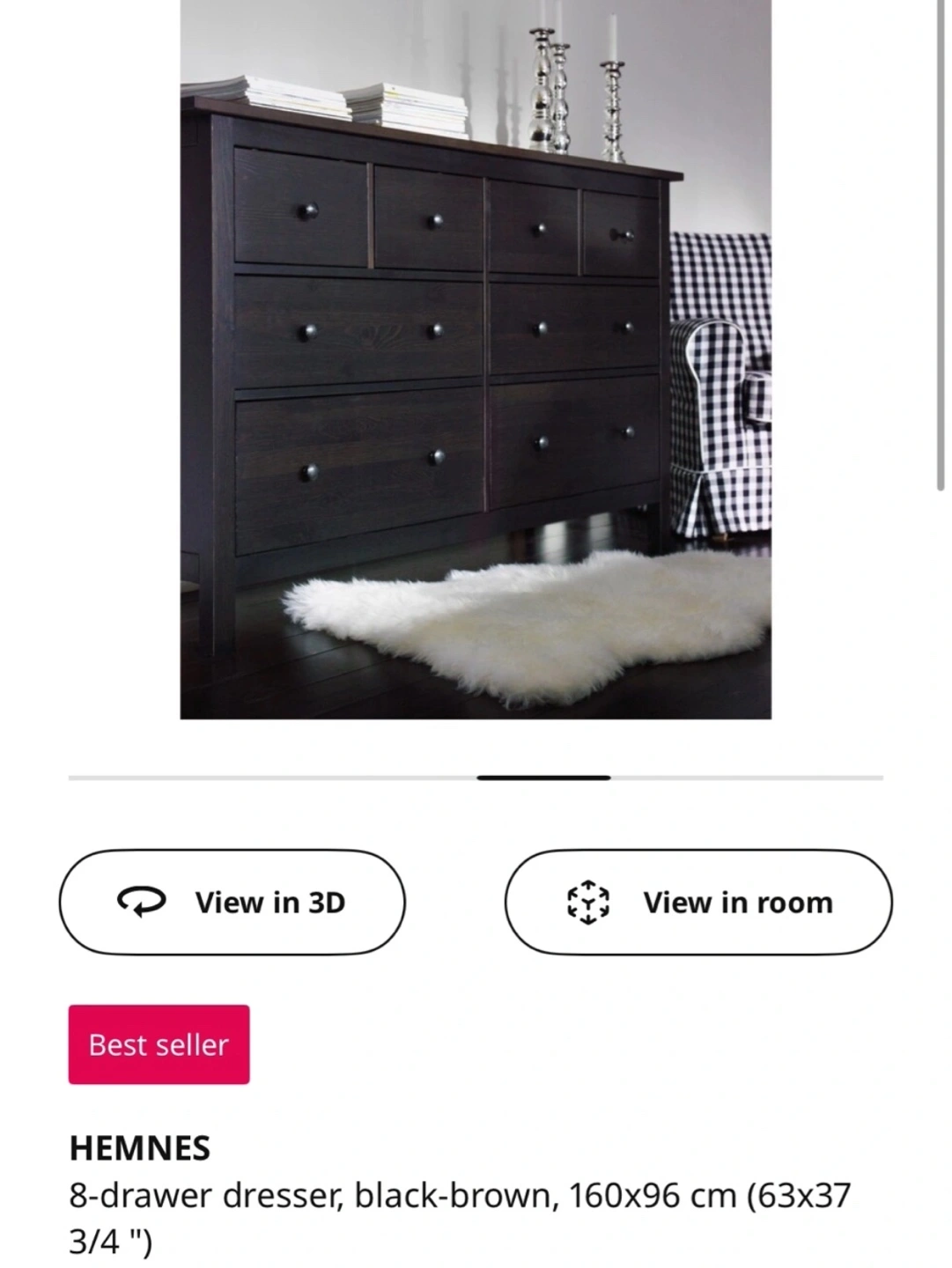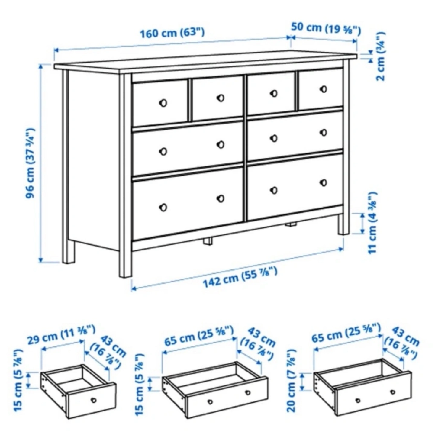 116Message me for a video of the drawer! I’m selling my HEMNES 8-drawer dresser from IKEA. This dresser is currently out of stock at IKEA, where it retails for $529 plus tax (about $597 total). • Price: $310 • Condition: Good (fully assembled) • Dimensions: In pictures • Assembly: Already assembled, saving you time and effort Terms: • Pickup Location: Downtown Toronto • Availability: Immediate; no holds—first come, first served If you’re interested or have any questions, please send me a message