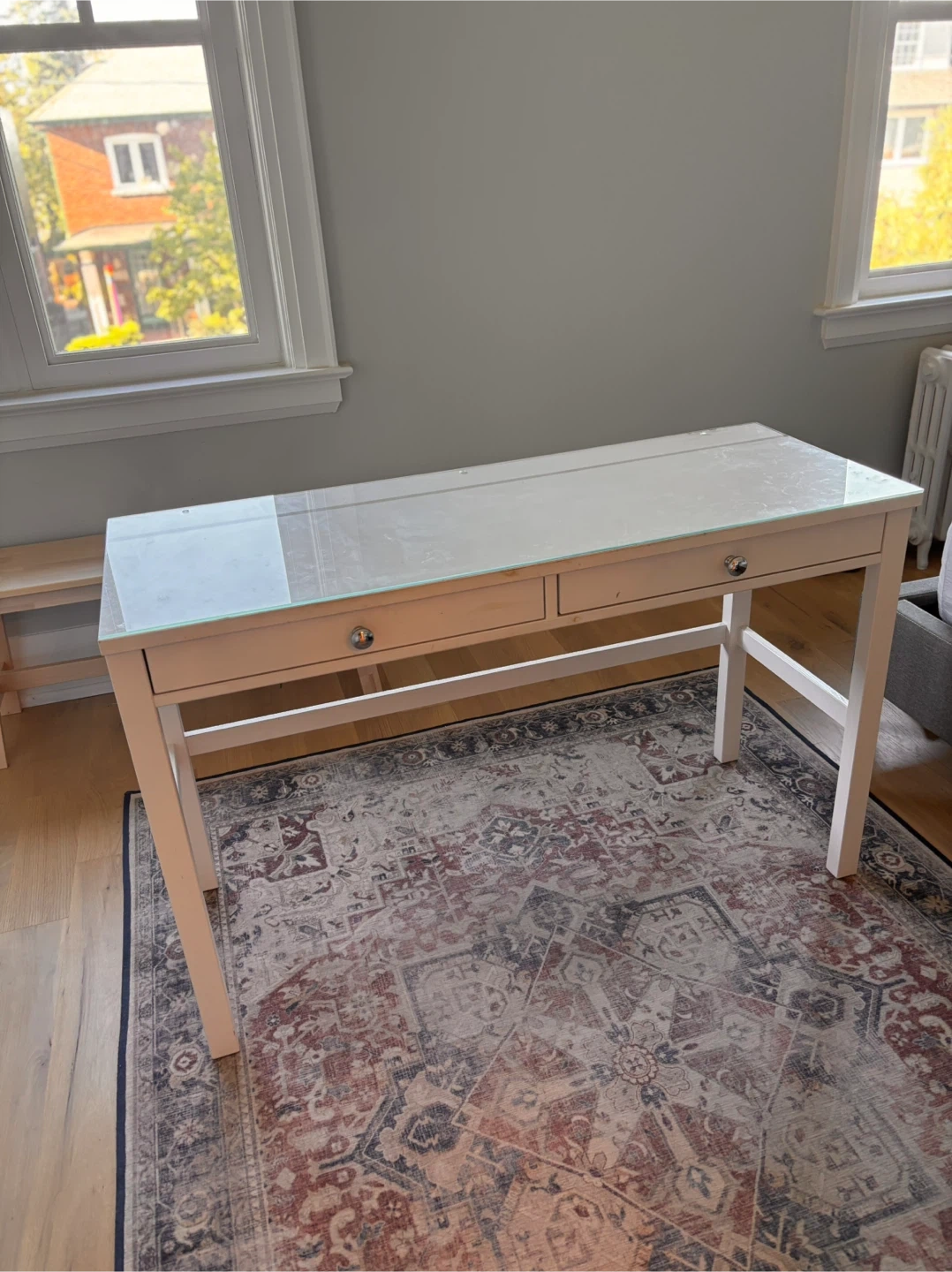 Hemnes IKEA Desk - White with 2 drawers & glass top