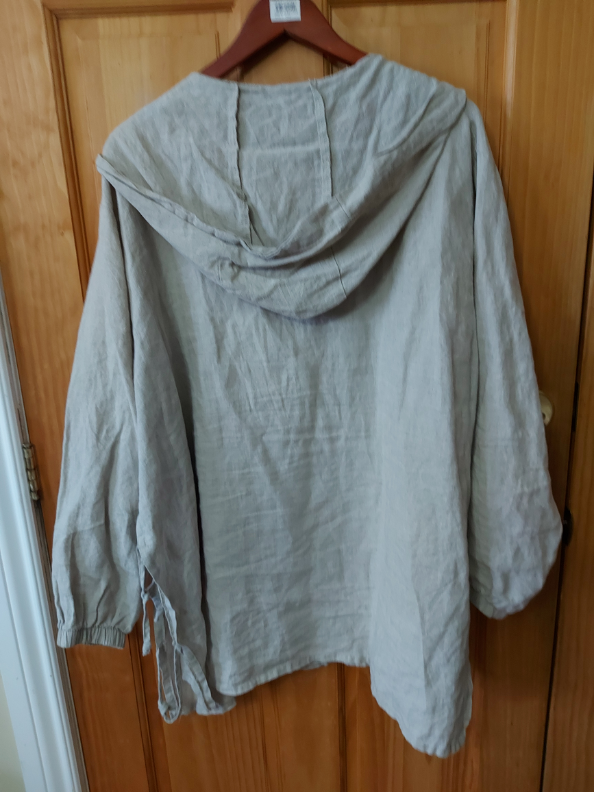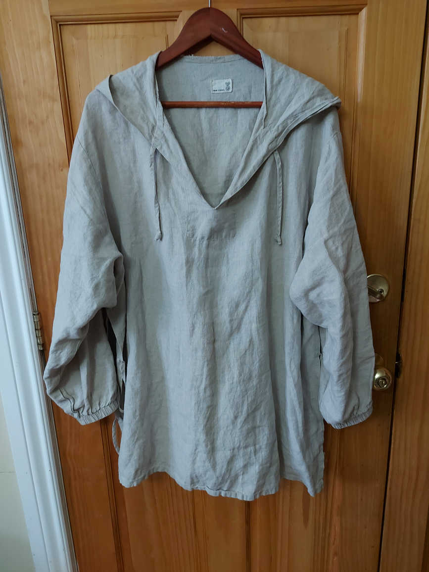 1000+All-natural hemp fibre pullover hoodie. Lightweight. XL. 2 side ties on each side. Spacious hood. Elastic cuffs. In excellent condition - rarely worn. For the environmentally fashion conscious! Available for pick-up near Oakwood Village.