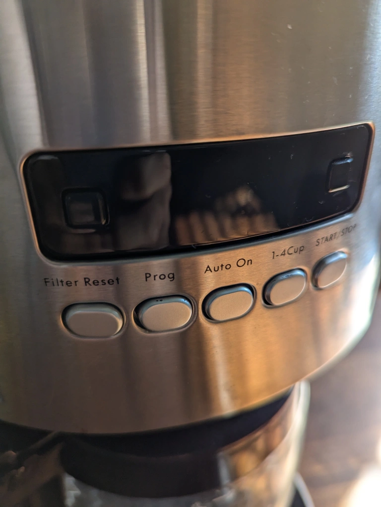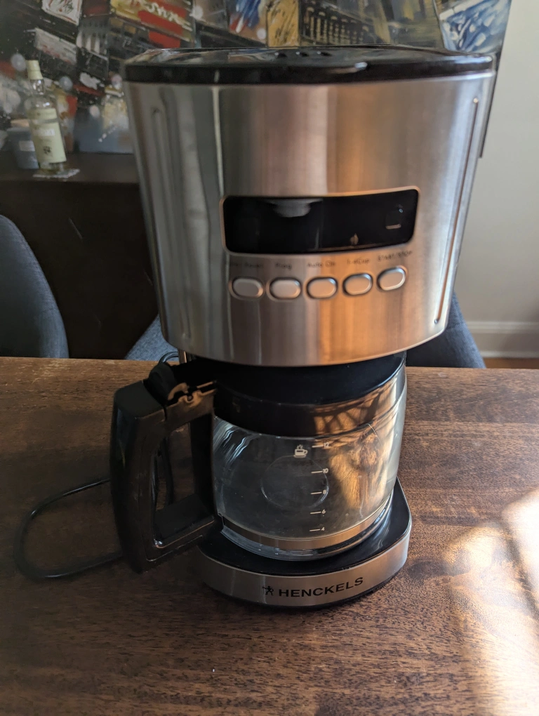 Selling a Henckels coffee maker. It's in great shape and ready to make your mornings a little easier! It has a filter reset, program, auto on, 1-4 cup, and start/stop buttons.