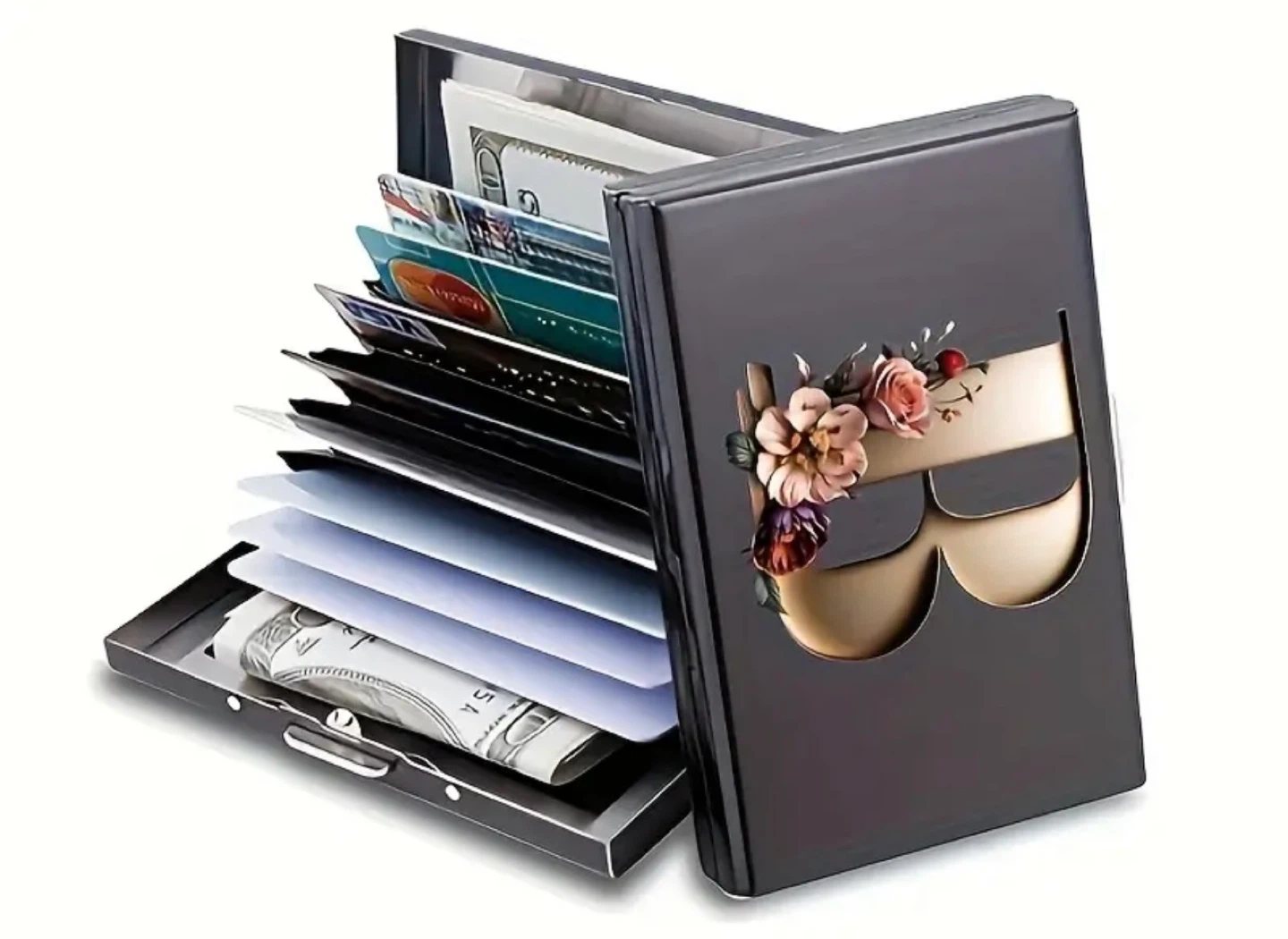 New! Aluminum 10 Card Holder Wallet with Floral "U " Design