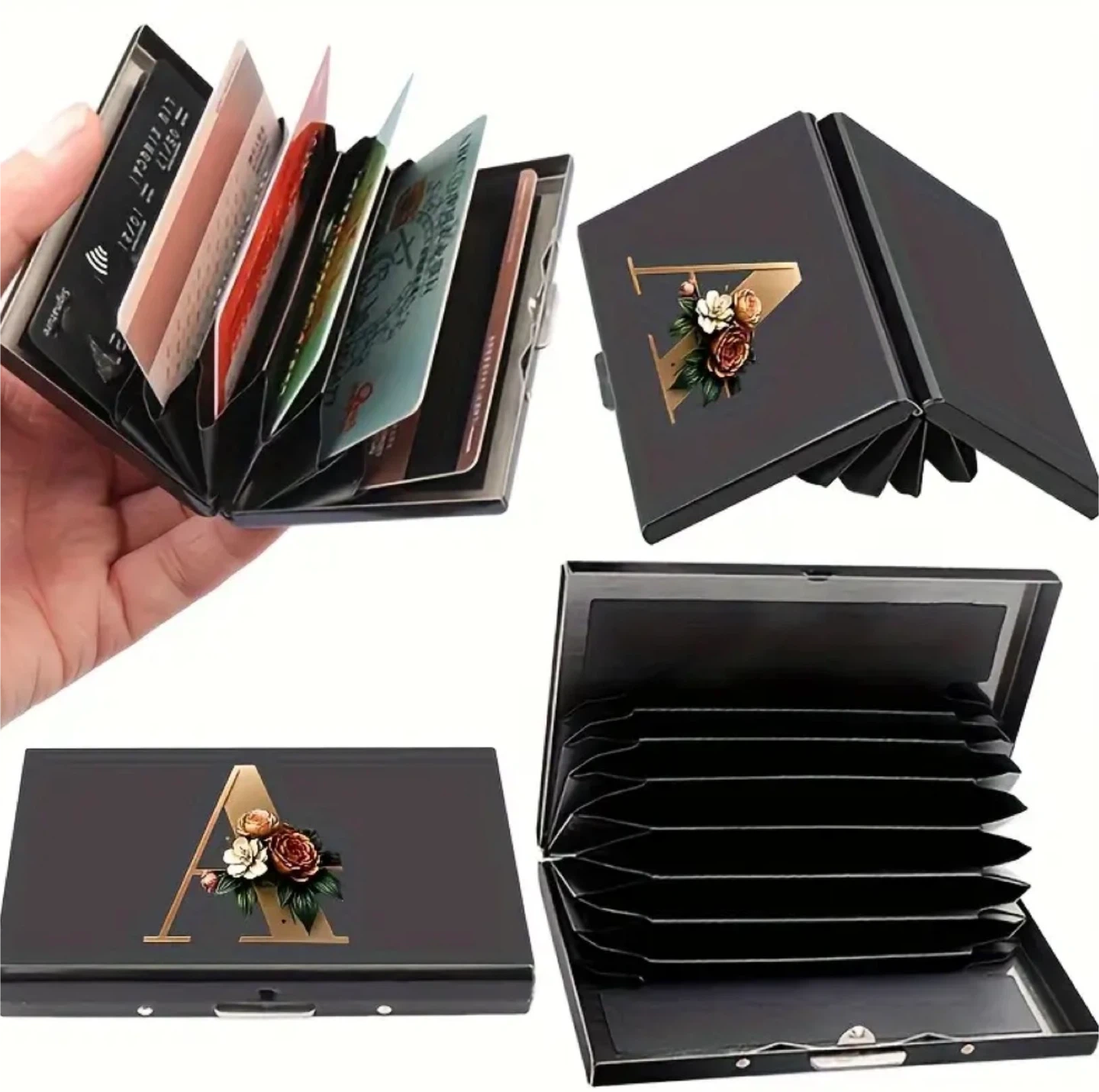 New! Aluminum 10 Card Holder Wallet with Floral "U " Design