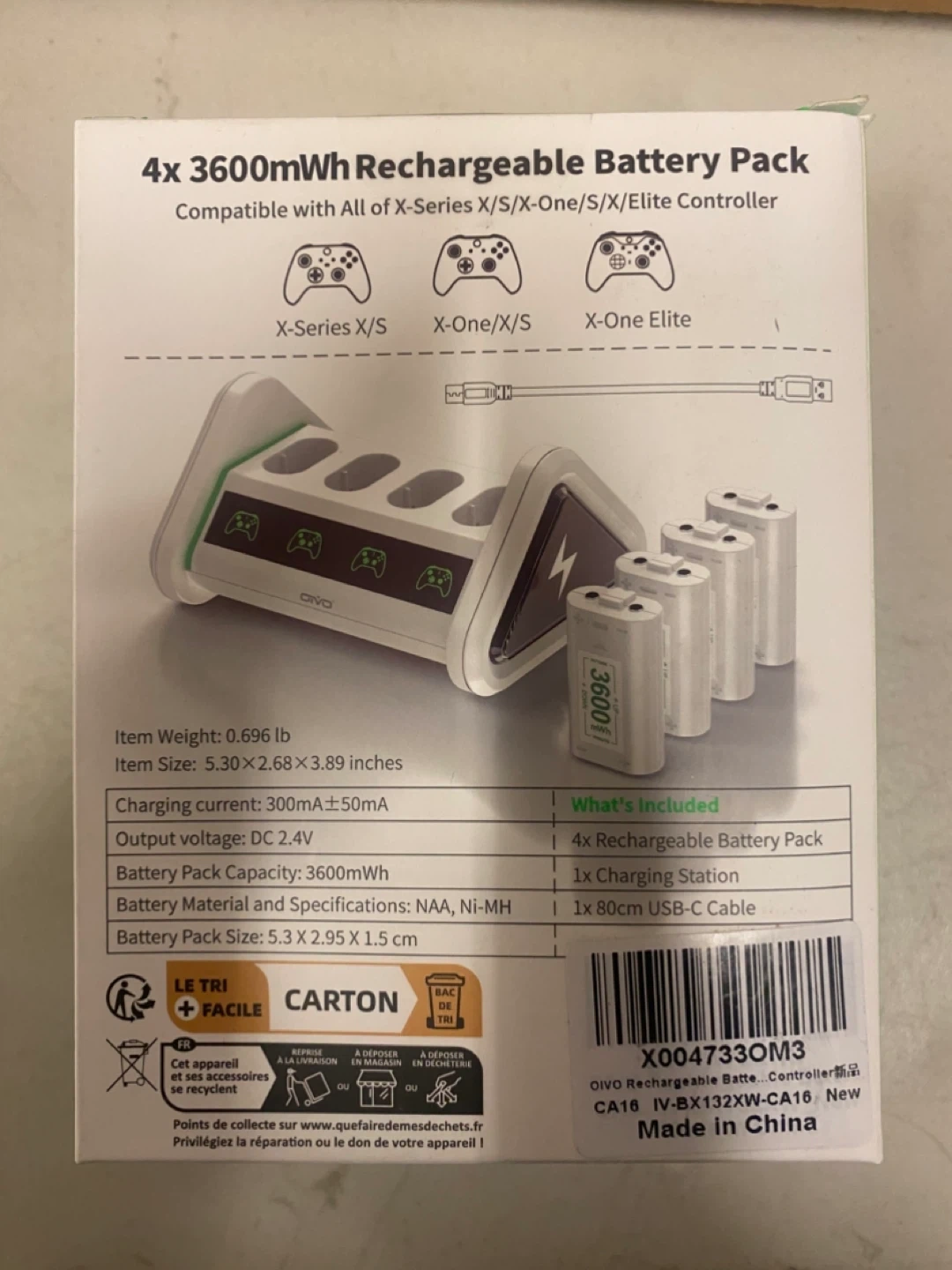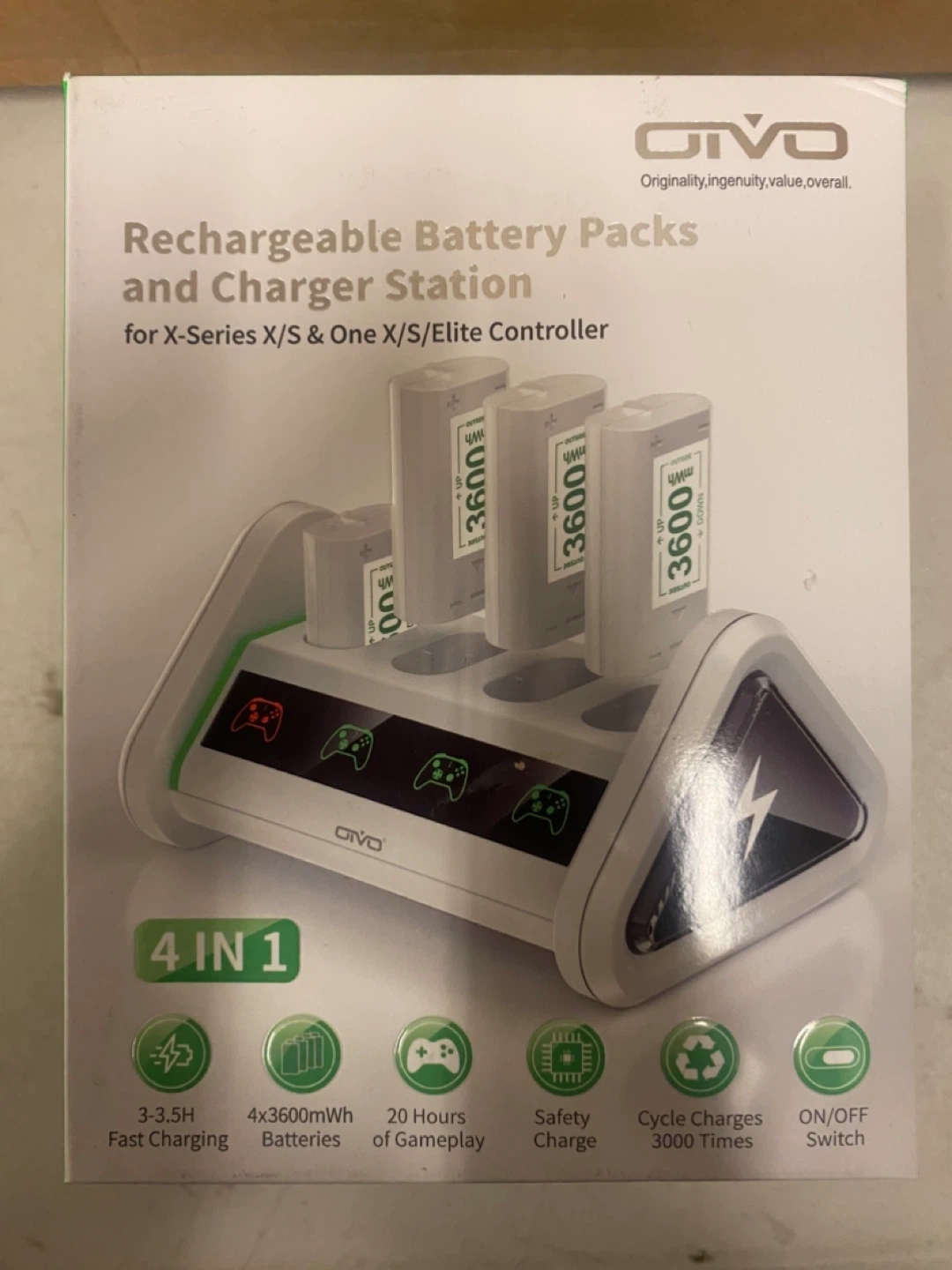 OIVO Rechargeable Battery Pack for Xbox– 4 Batteries