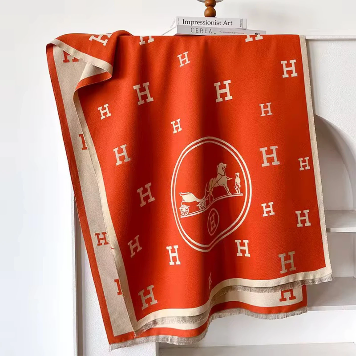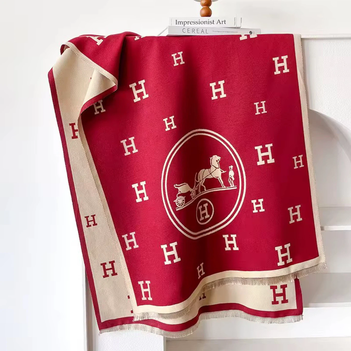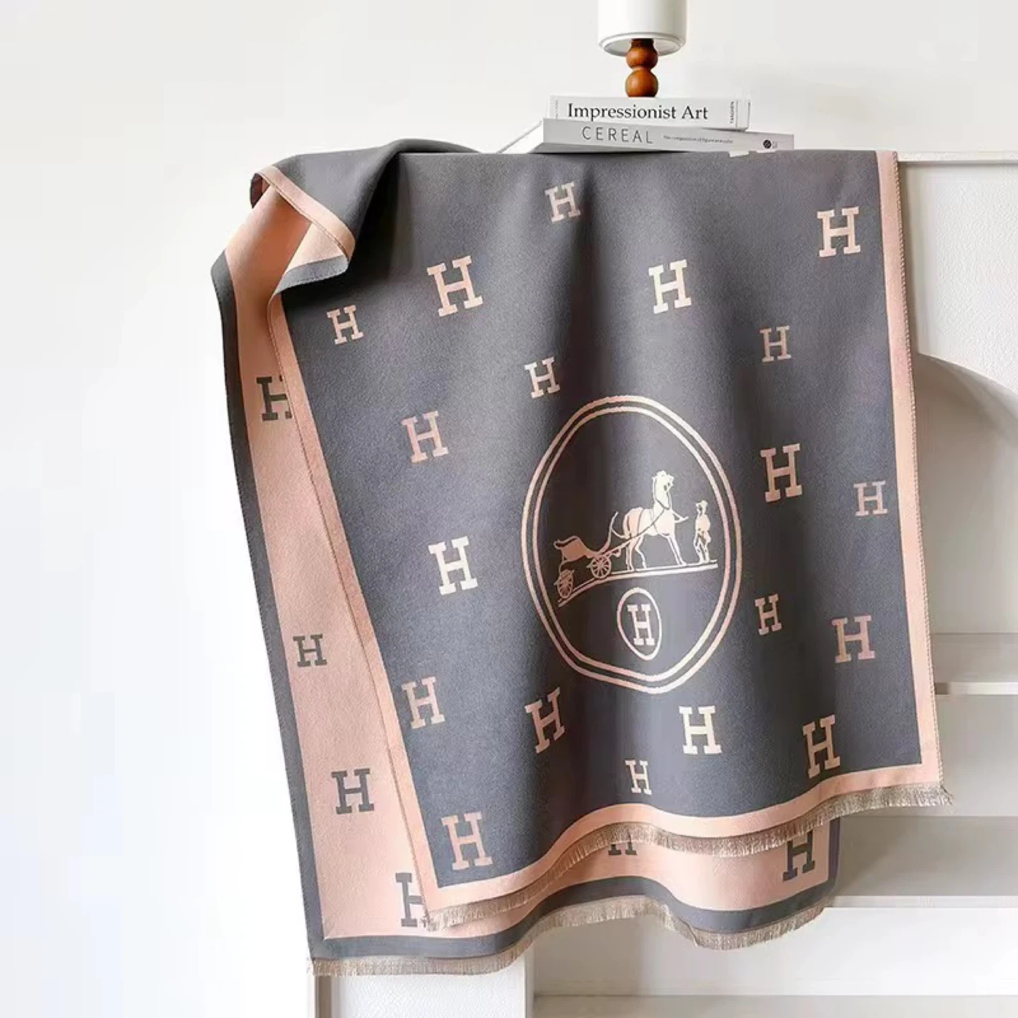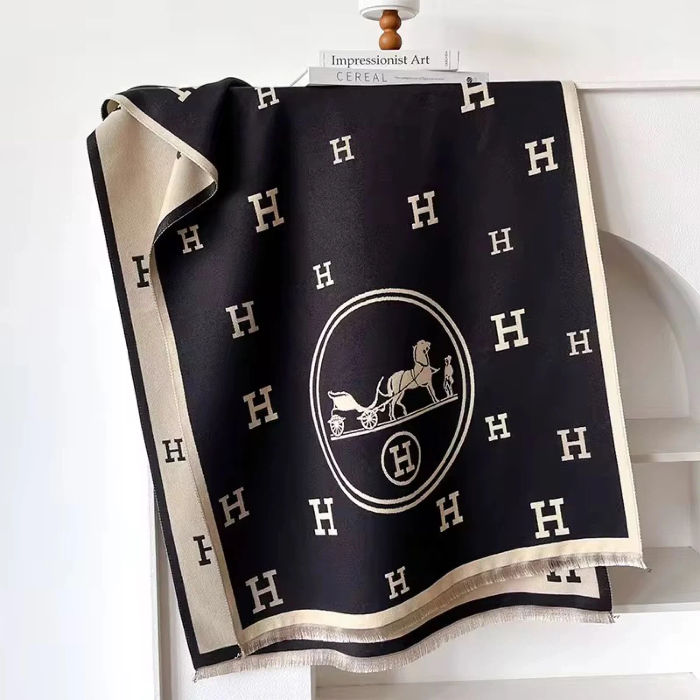 15Add a touch of luxury to your home with this stylish Hermès Avalon scarf! It features the iconic 'H' pattern and the classic Hermès logo. Perfect for adding warmth and elegance to any room in your home