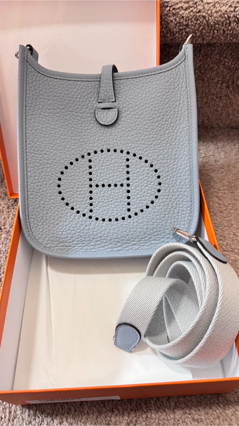 60Selling a beautiful Hermès Evelyne TPM bag in the lovely Bleu Lin colour! The bag is in great condition and comes with its original box. Comes with receipt