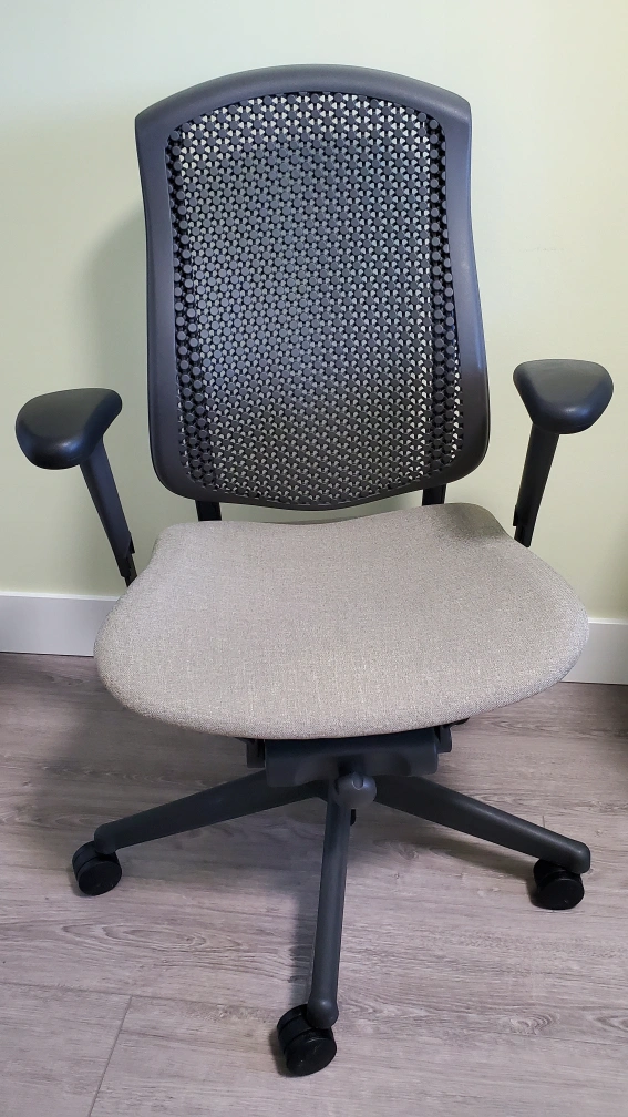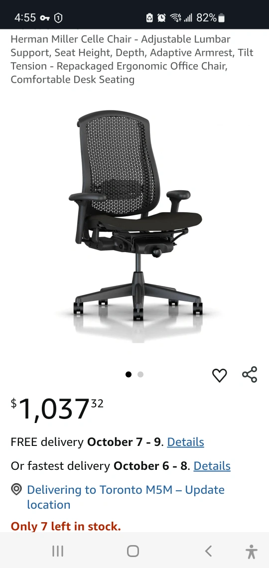 Herman Miller office chair.It's super comfy and in great shape. Perfect for working from home or just adding a touch of style to your office space. It has a grey mesh back and light beige seat. I have two chairs, like new. Original price $1000