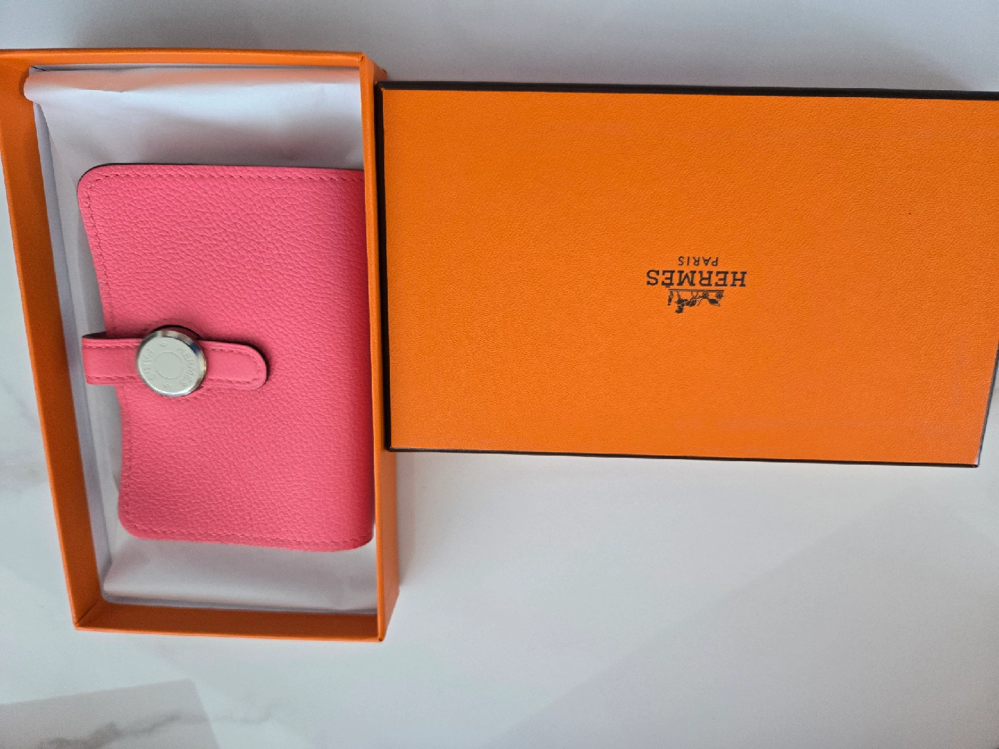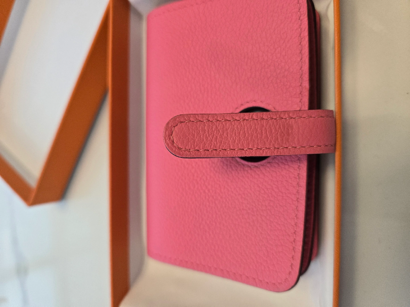 Selling almost new Hermes Dogon EV card holder in the lovely Rose Azalee colour! It's barely been used and comes with its original box. The receipt shows it originally retailed for $1375. It's a beautiful and compact accessory!