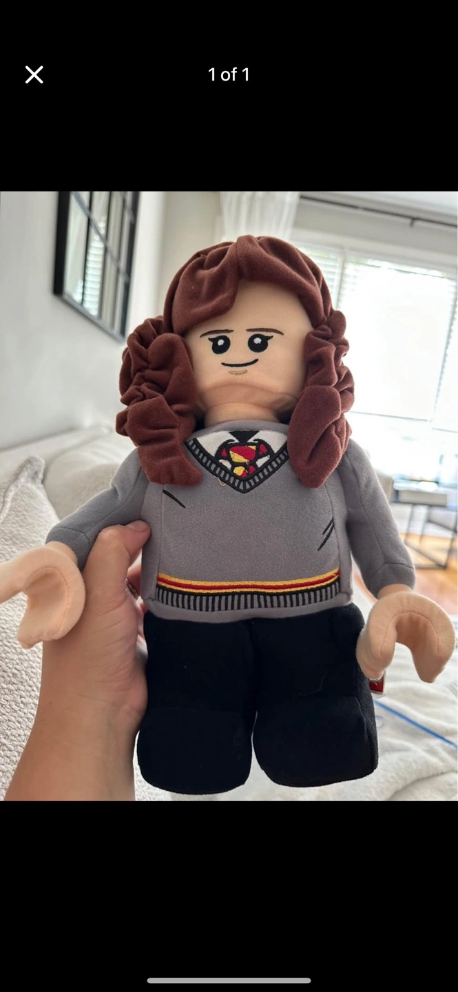 Adorable Hermione Granger plush. Lego-style design. Grey Hogwarts sweater. Brown hair. Excellent condition.