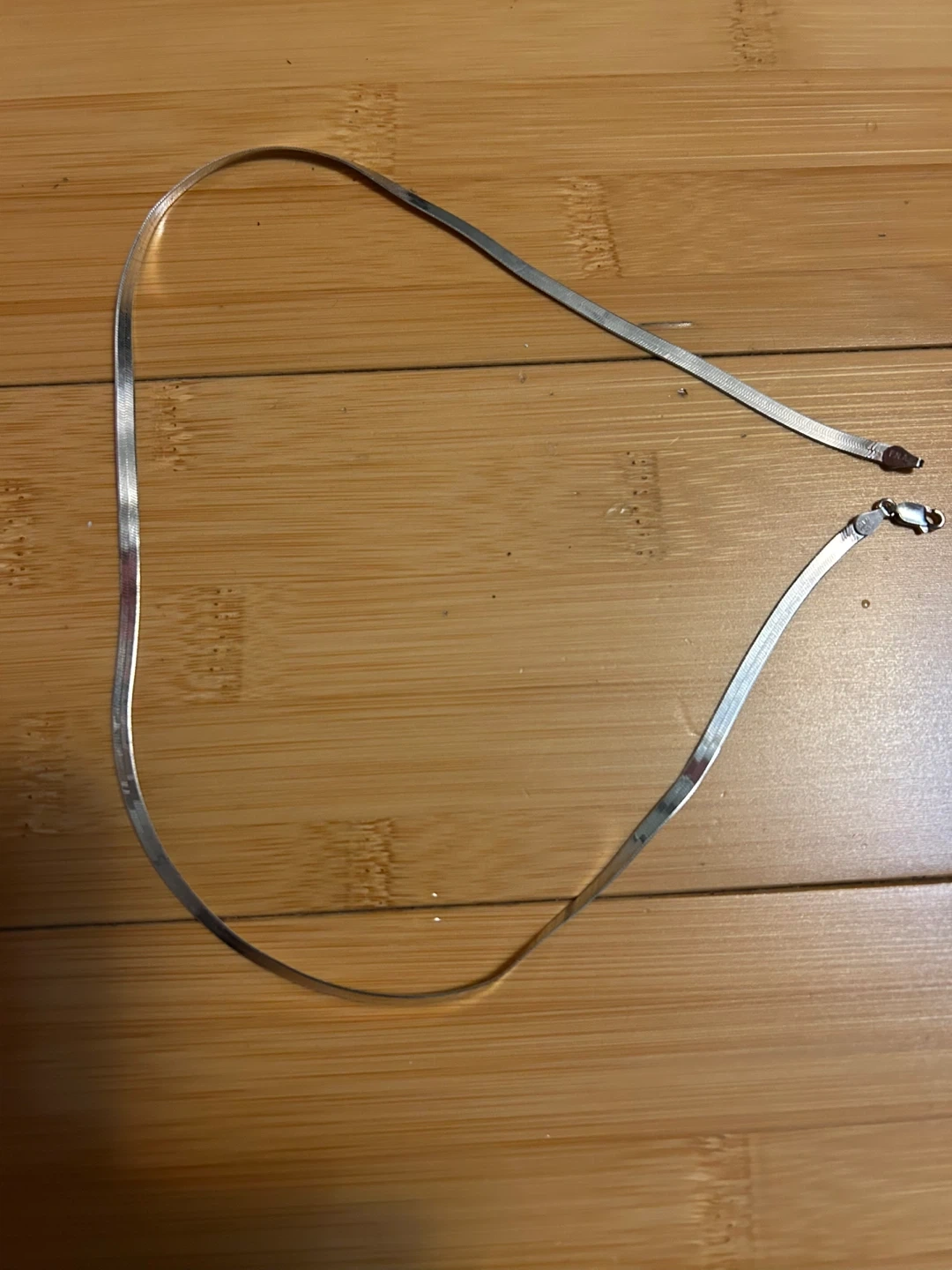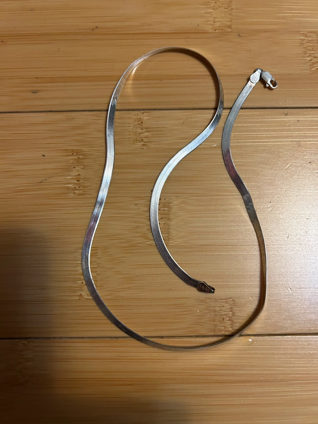 60Selling a beautiful herringbone chain necklace. Real Italian 925 Silver. It's in great condition and ready to wear! The necklace has a sleek, flat design that catches the light nicely. It's a versatile piece that can be worn alone or layered with other necklaces
