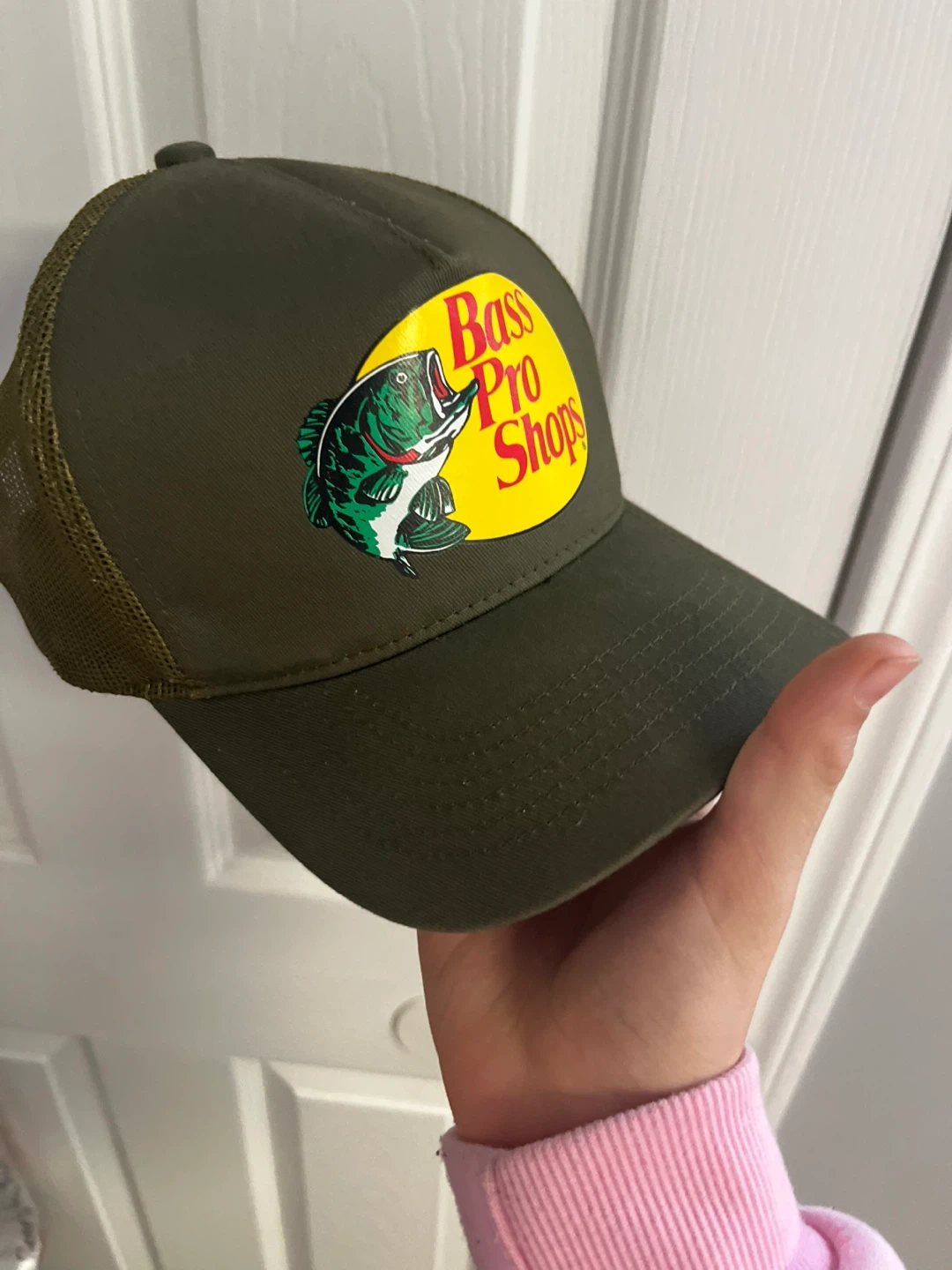 Selling a Bass Pro Shops trucker hat in olive green! It's in great shape and ready for a new adventure. Perfect for fishing, hiking, or just hanging out