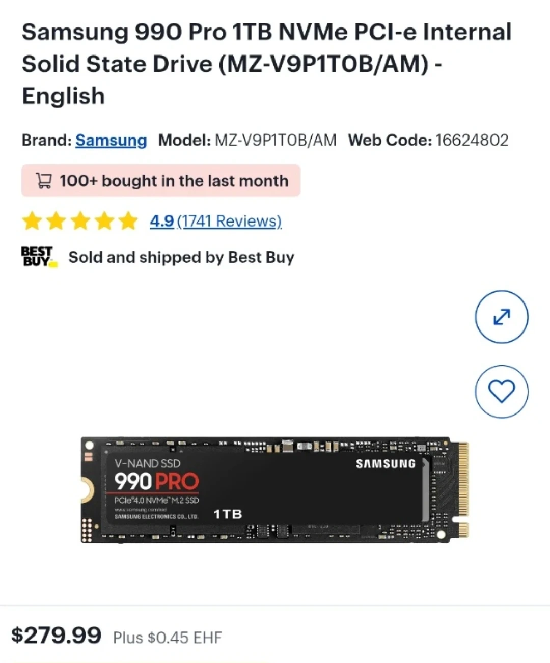 Samsung 990 Pro 1TB NVMe M.2 SSD