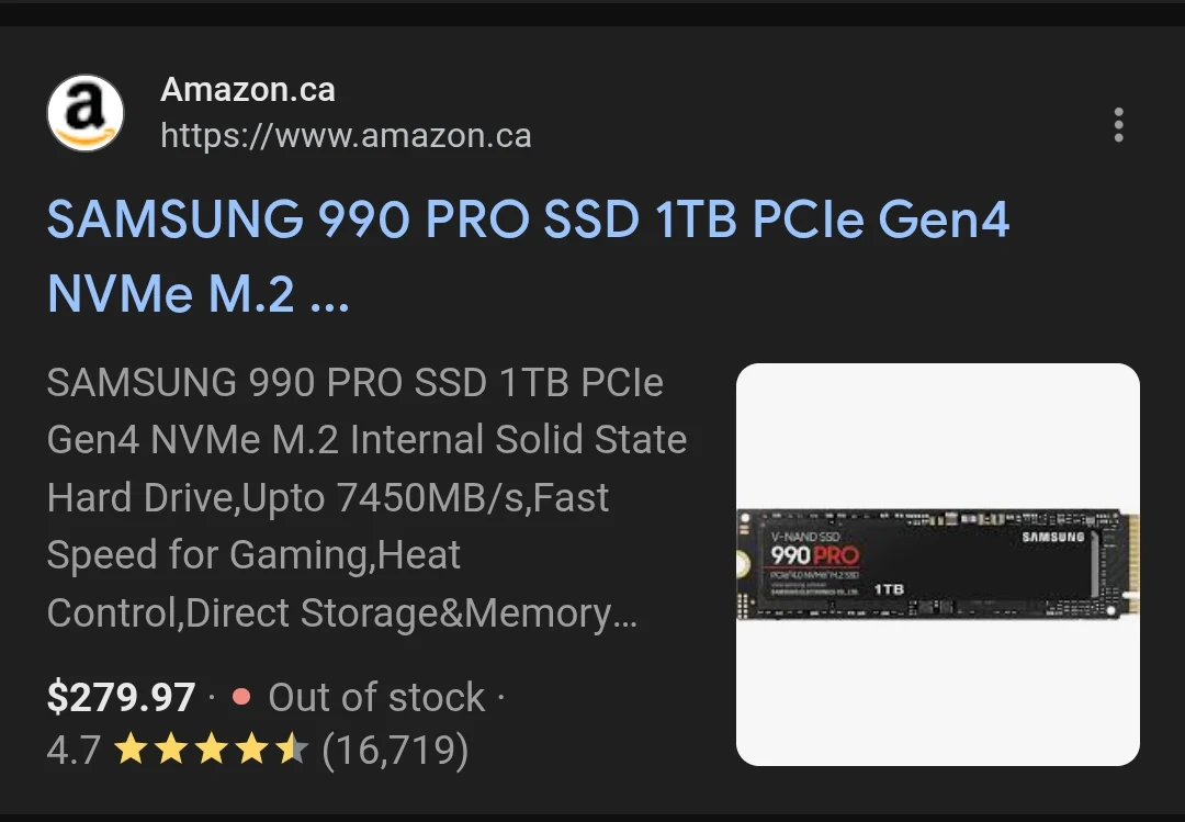 Selling leftover Samsung 990 PRO 1TB SSD from my build.