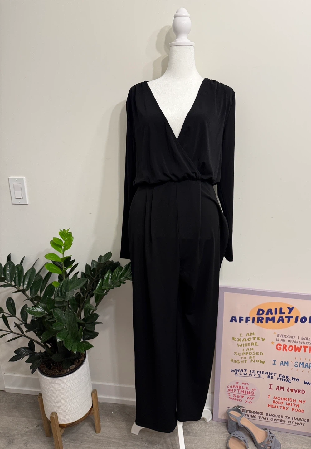 Buy & SellH&M Black Long Sleeve Jumpsuit Size SH&M Black Long Sleeve Jumpsuit Size S$25This black H&M jumpsuit has long sleeves and a V-neckline. It's a size small. It comes with a cinched waist and wide-leg pants.ConditionLike newSizeLargeBrandH&MWHERE TO MEETNations ExperienceView MapSELLERverifiedStephStockyards District41537 reviews0 chats·0 favorites·4 viewsSEND CHAT TO SELLERHi Steph! I’m interested in your listing.Hi Steph! I’m interested in your listing.Get the Karrot app to chatSign In to chat