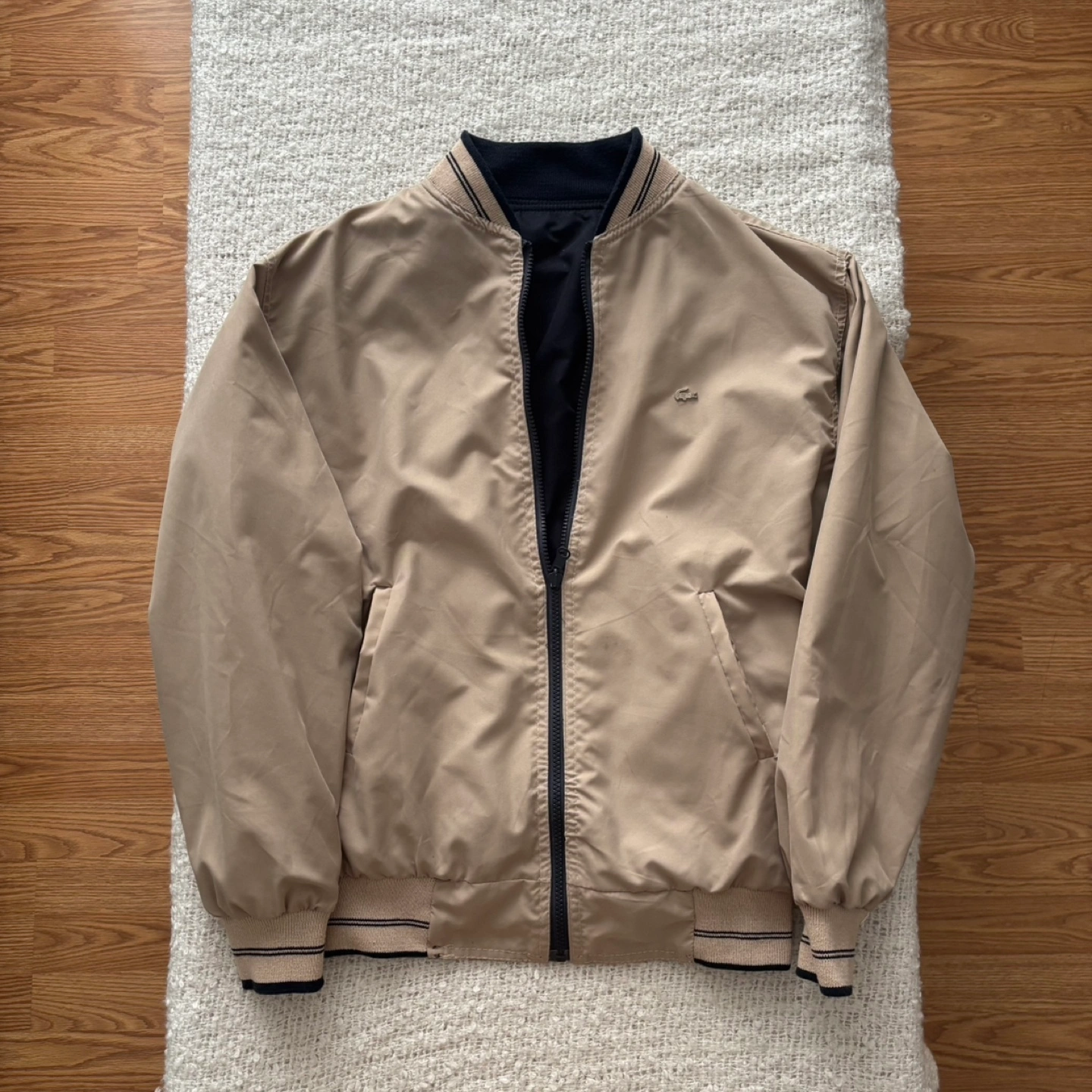 Navy and tan, authentic Lacoste vintage bomber jacket, in great condition. Open to offers, local delivery available (Ottawa/Gatineau). Check my other listings for bundle deals!