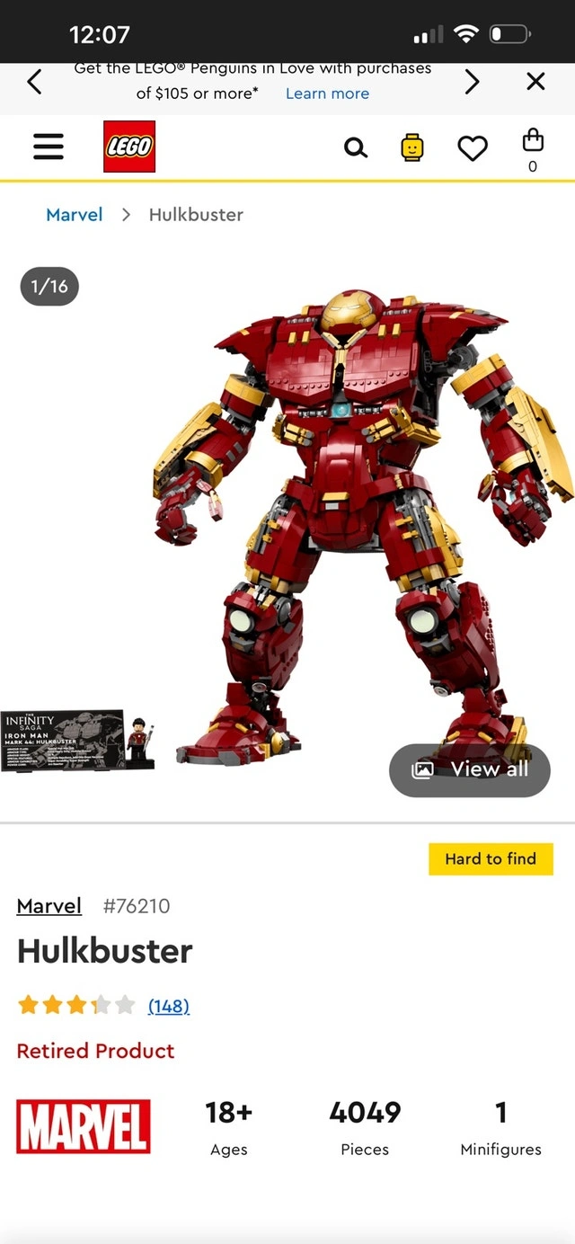Selling brand new, never opened Lego Iron Man Hulk Buster. This product is discontinued and has 4049 pieces. No trades. Meet in person. Price: $675. If the ad is still up, it is still available.