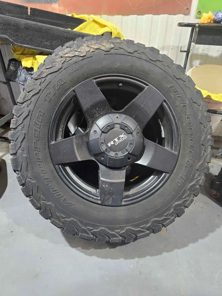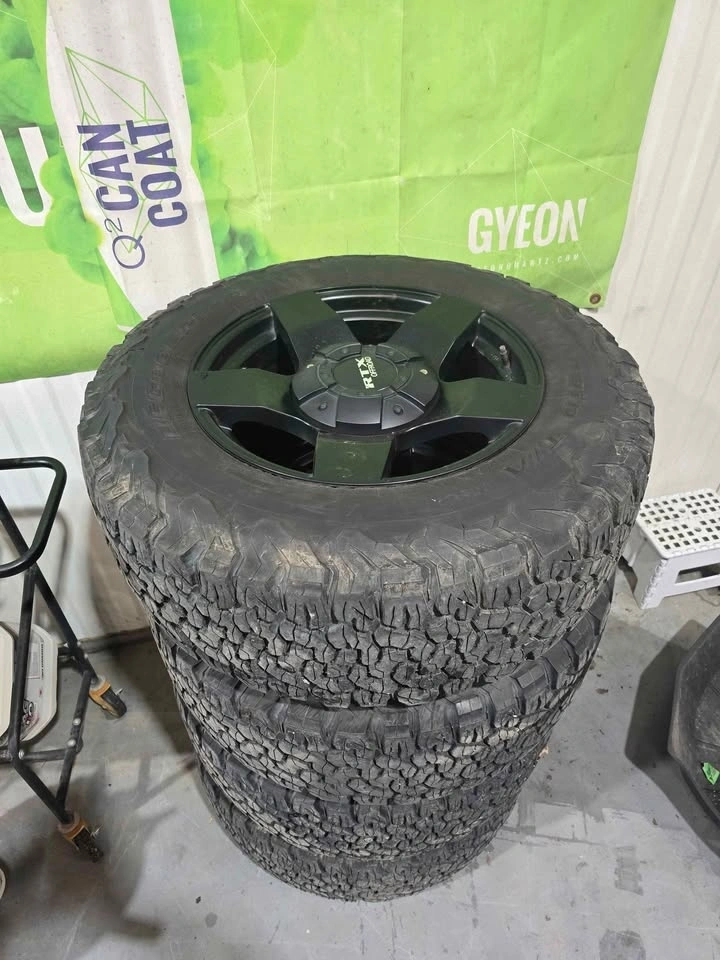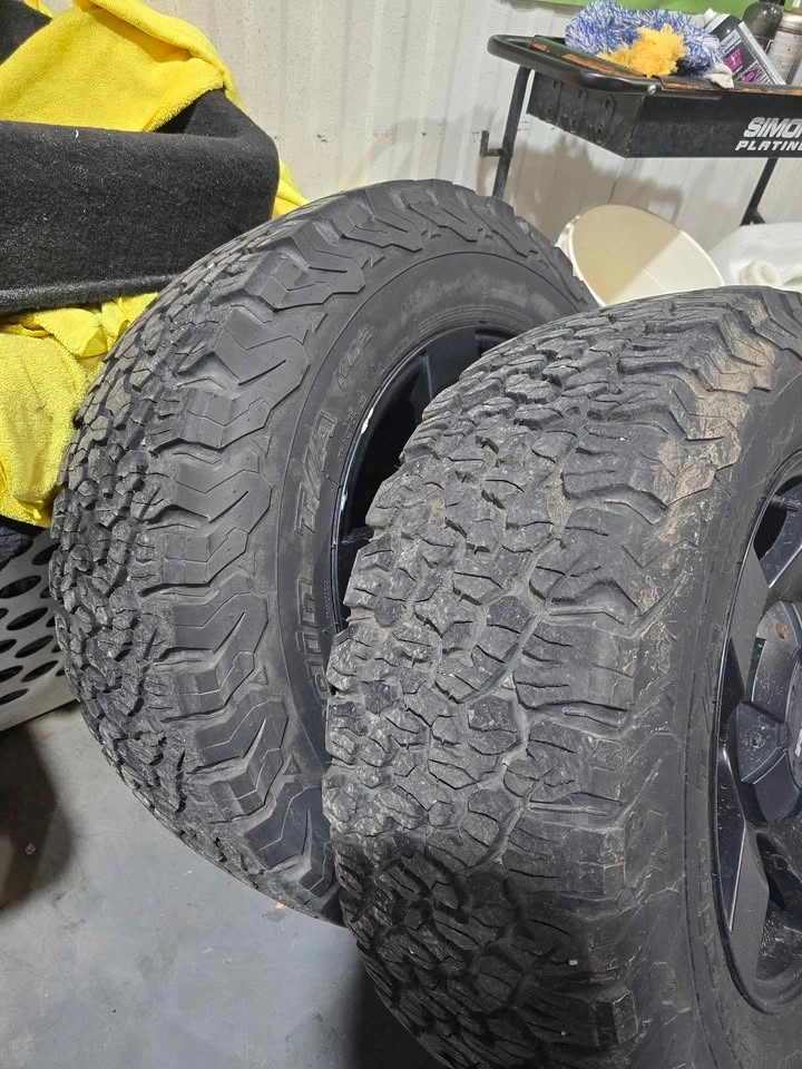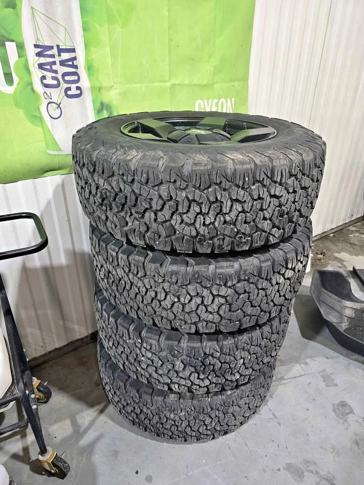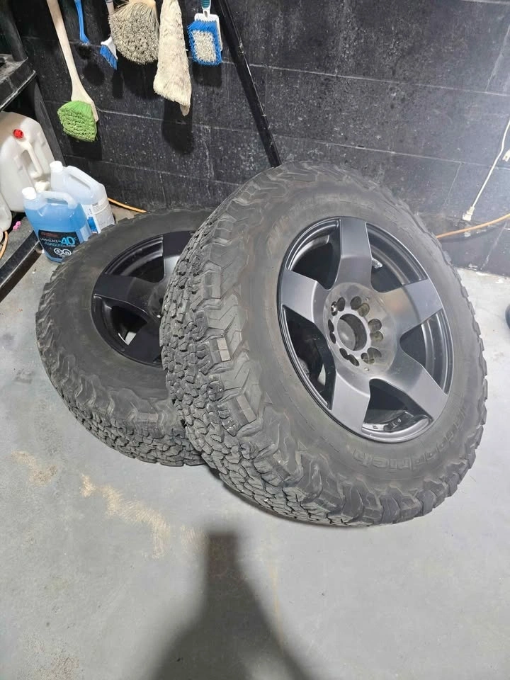 18” wheels with BFGoodrich KO2 tires. Tires are from 2021 with lots of tread left. Wheels are in great shape, though one has minor curb rash. These came off a 2013 Ford F150. Asking $1,200 OBO.