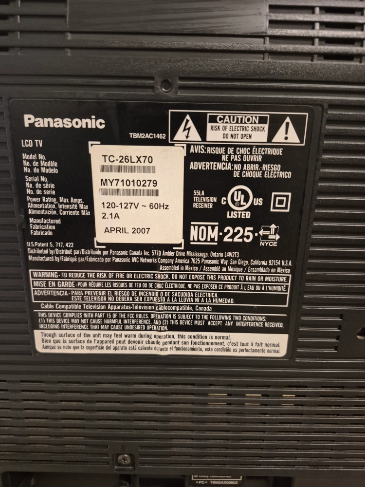 Selling a 2007 Viera Panasonic 28 inch LCD Flat-Screen TV, it is in great condition and comes with a remote with AA batteries included!! All functional and waiting for a new home and room!