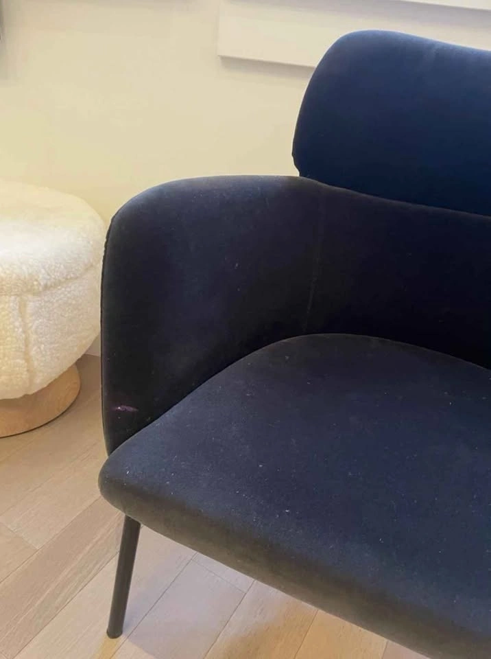 Great overall condition. The velvet will need brushing as it naturally develops pressure markings.