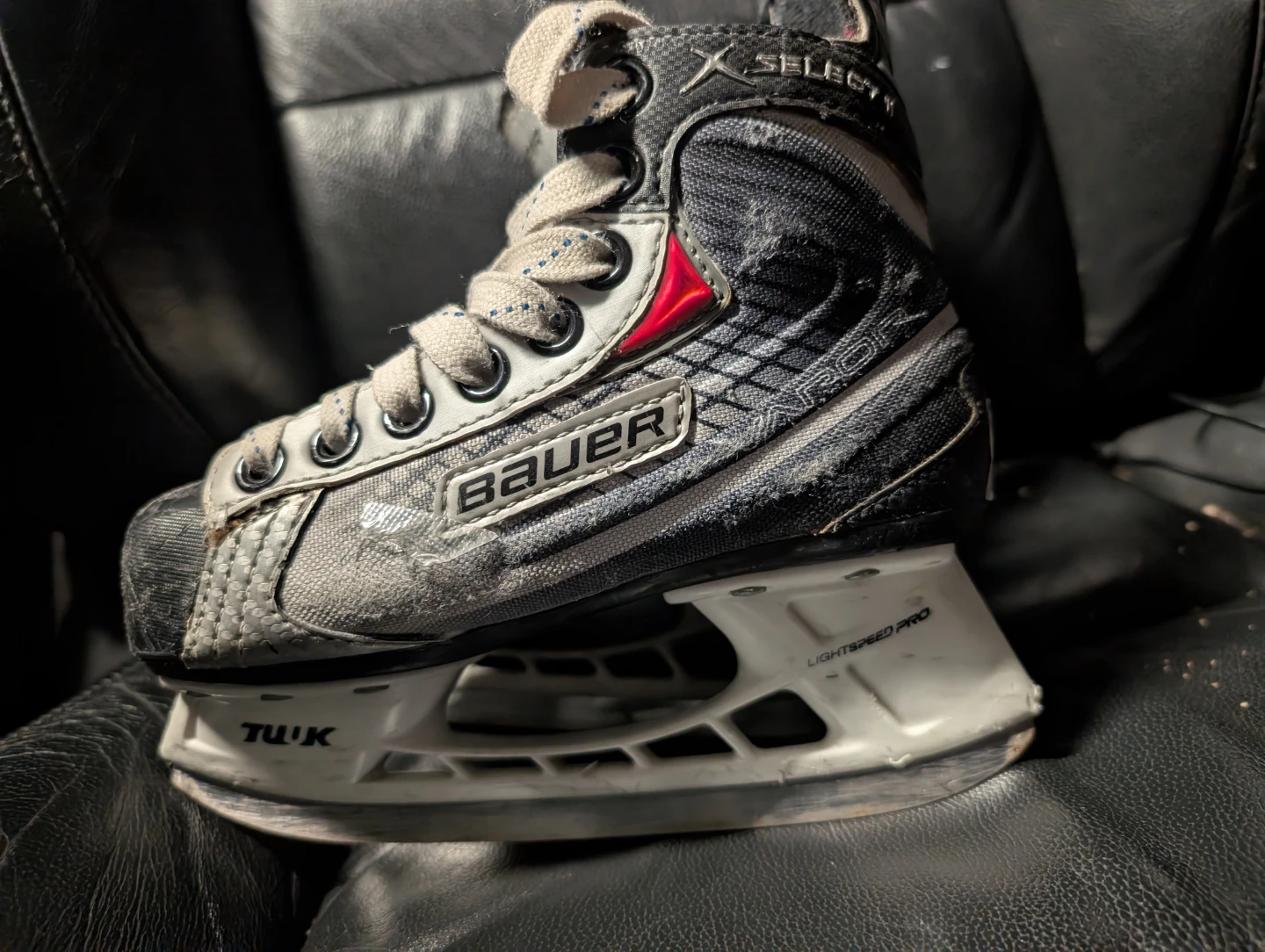 Selling a pair of kids Bauer Vapor X400 ice hockey skates in size 11.5. They show signs of wear, but still have plenty of life left for recreational skating or shinny!