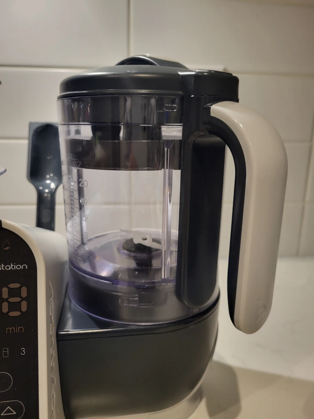 Includes steamer basket, blender jar, and spatula.